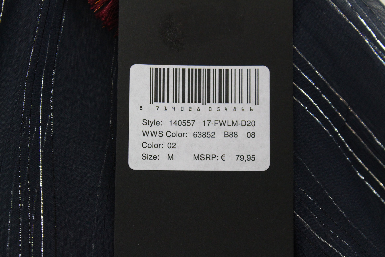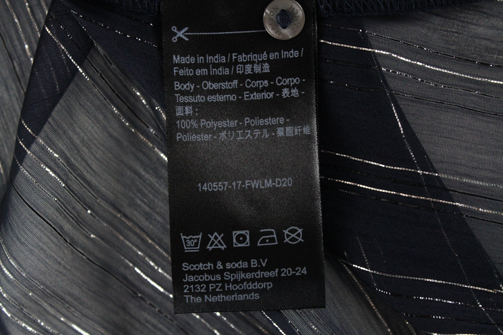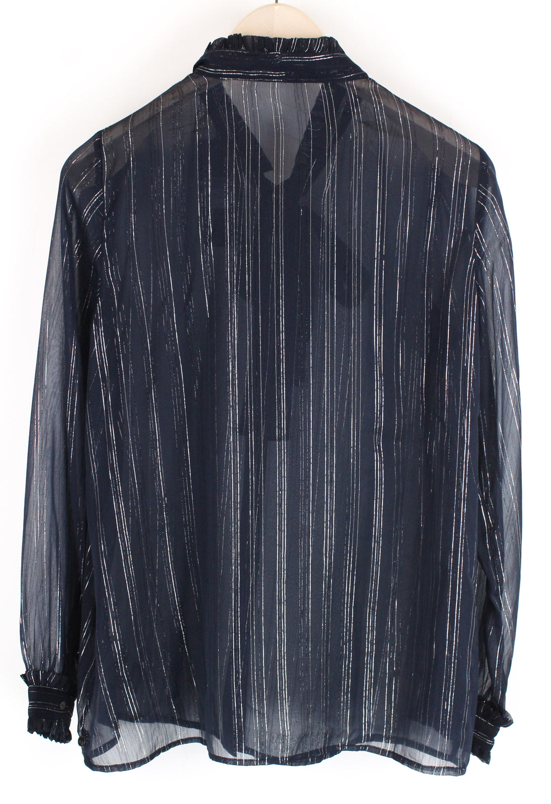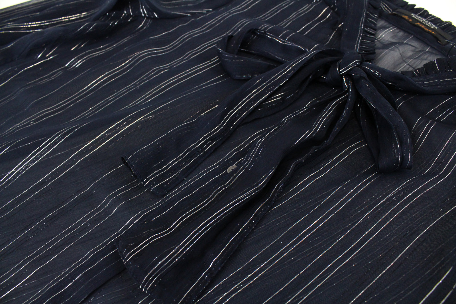 MAISON SCOTCH Women Shirt M Navy Striped Glittered Collared Bow-Tied Ruffled