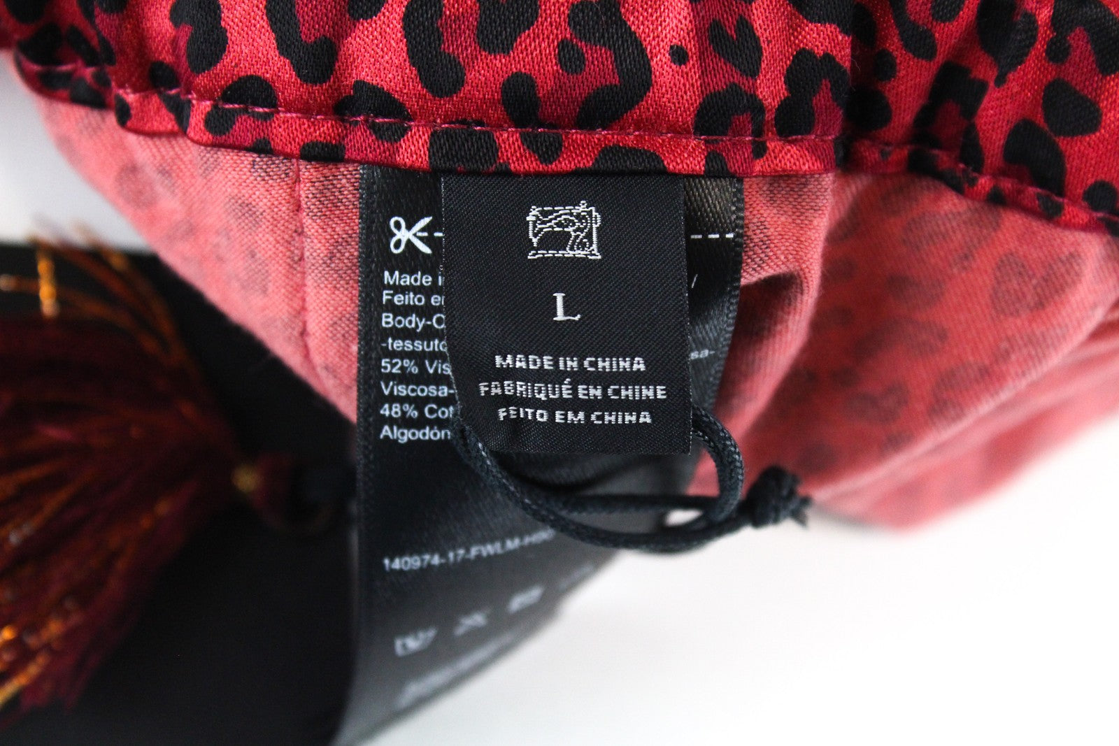 MAISON SCOTCH moteriški šortai L dydžio raudoni su gepardo raštu ir raukiniais, užsimaunami medvilnės mišinio šortai