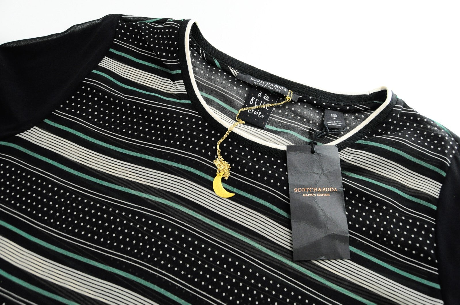 MAISON SCOTCH moteriški marškinėliai M su lengvu dryžuotu apvaliu kaklu, juodi melanžo spalvos