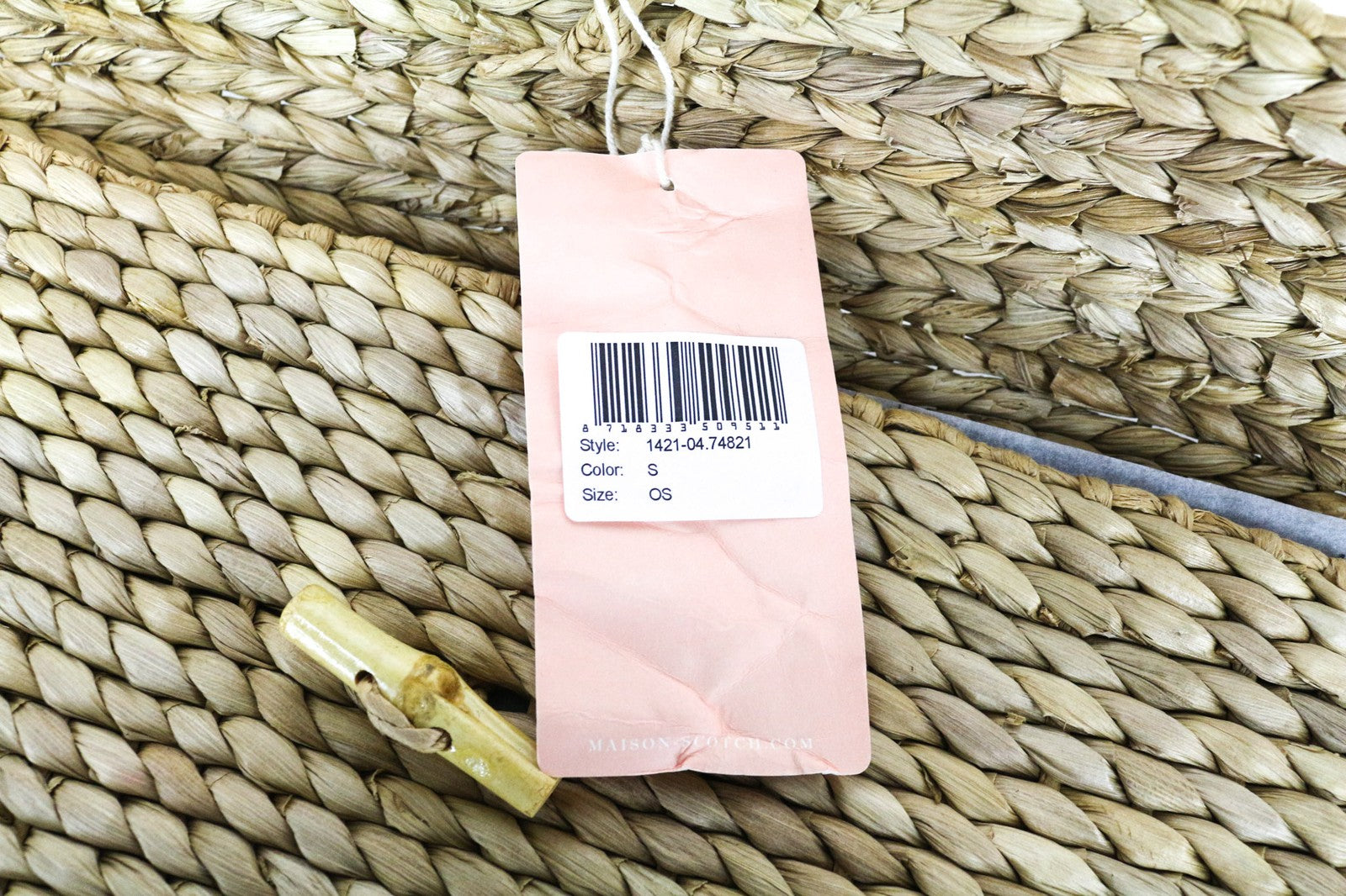 MAISON SCOTCH moteriškas krepšys OS šviesiai rudos spalvos šiaudų rašto vasarinė pintinė delninė be pamušalo