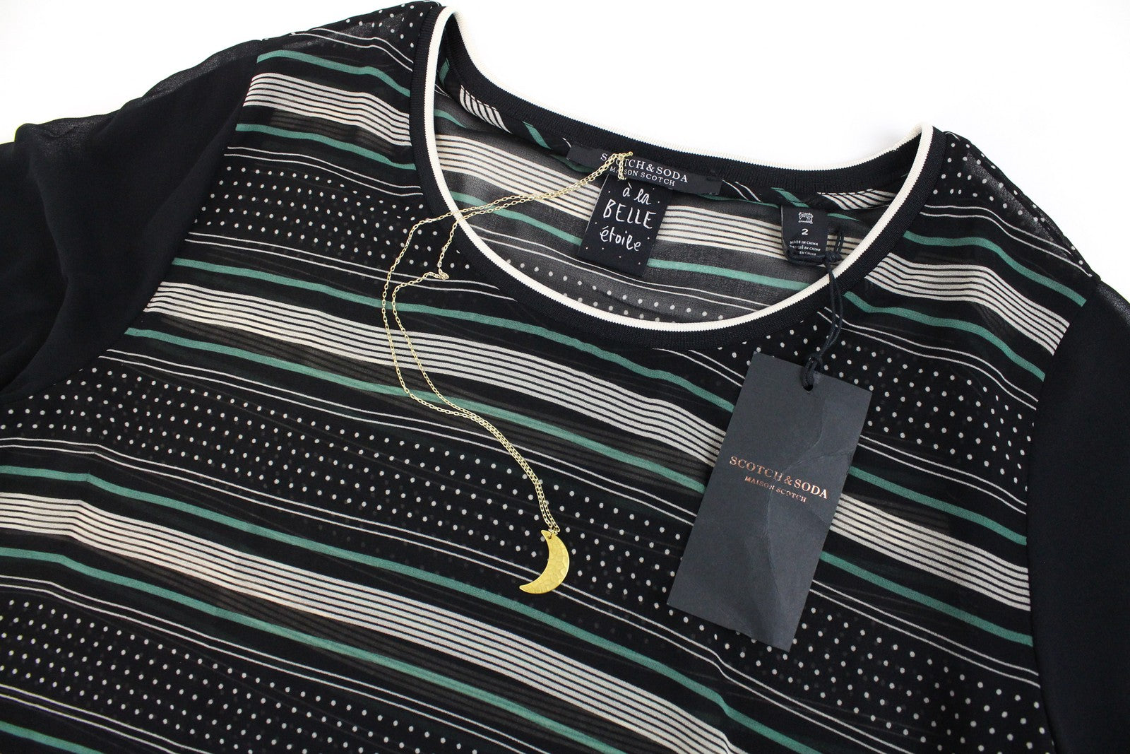 MAISON SCOTCH Womens Black Sheer T-Shirt M Short Sleeve Lightweight Pattern