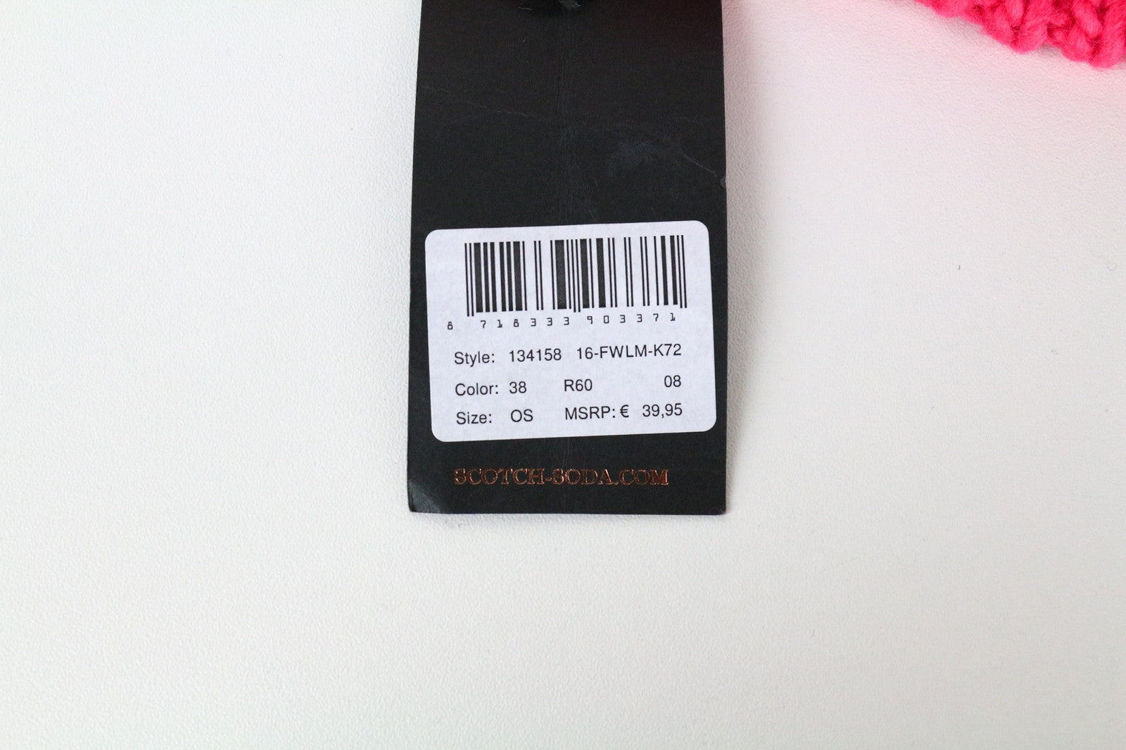 MAISON SCOTCH moteriška ryškiai neoninė rožinė kepurė su bumbulais ir OS megzta