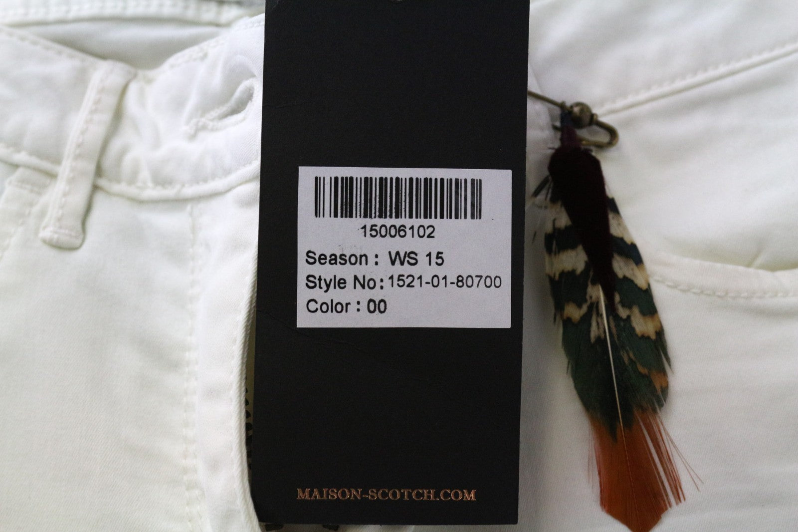 MAISON SCOTCH moteriškos kelnės W27/L30 baltos, aptemptos, su 5 kišenėmis ir užtrauktuku