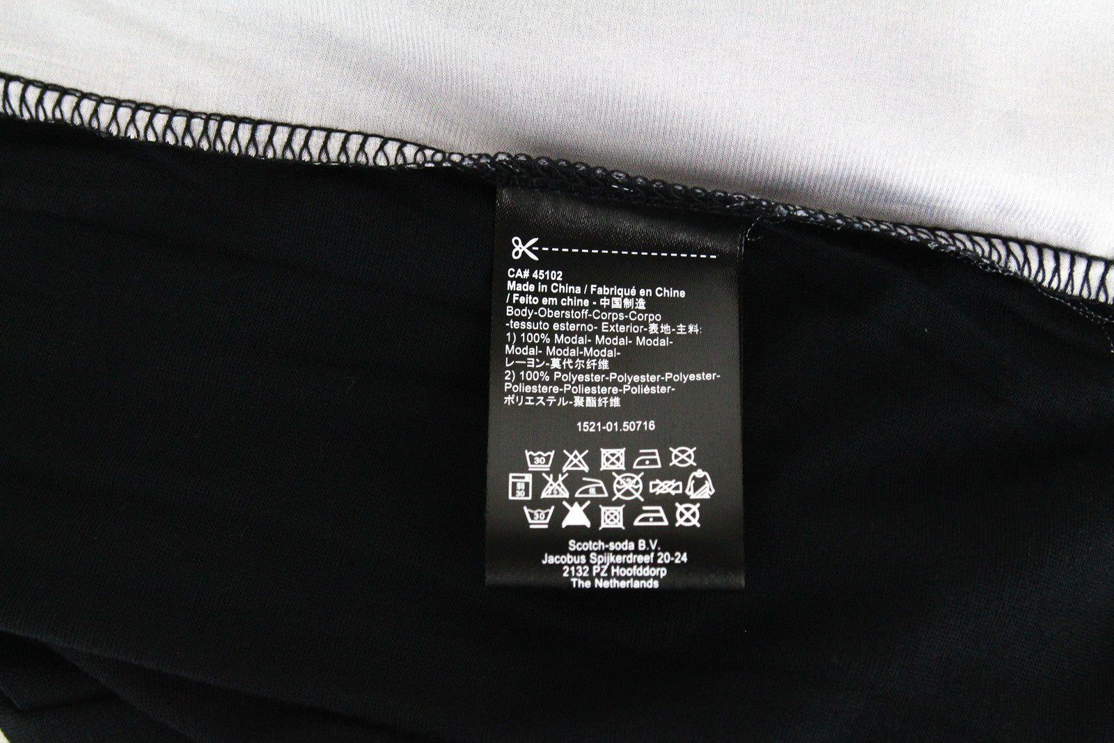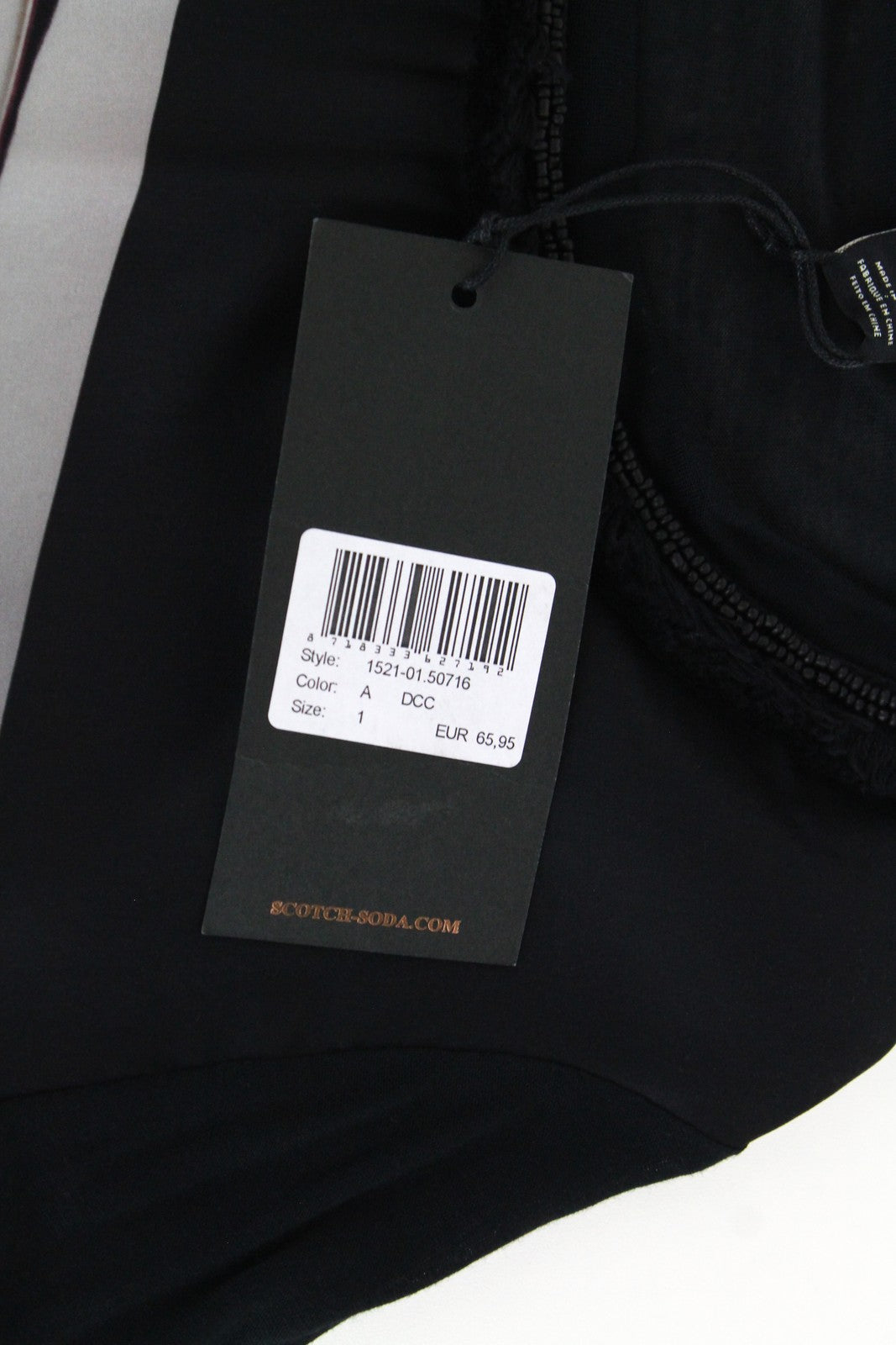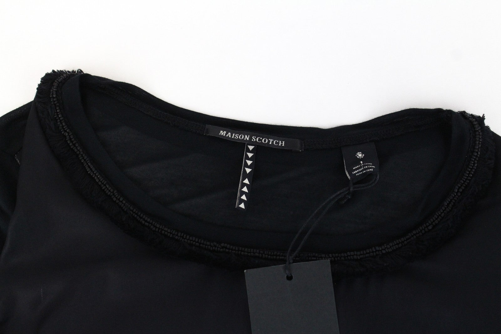 MAISON SCOTCH Women's S Black Abstract Print Light Casual Top Round Neckline