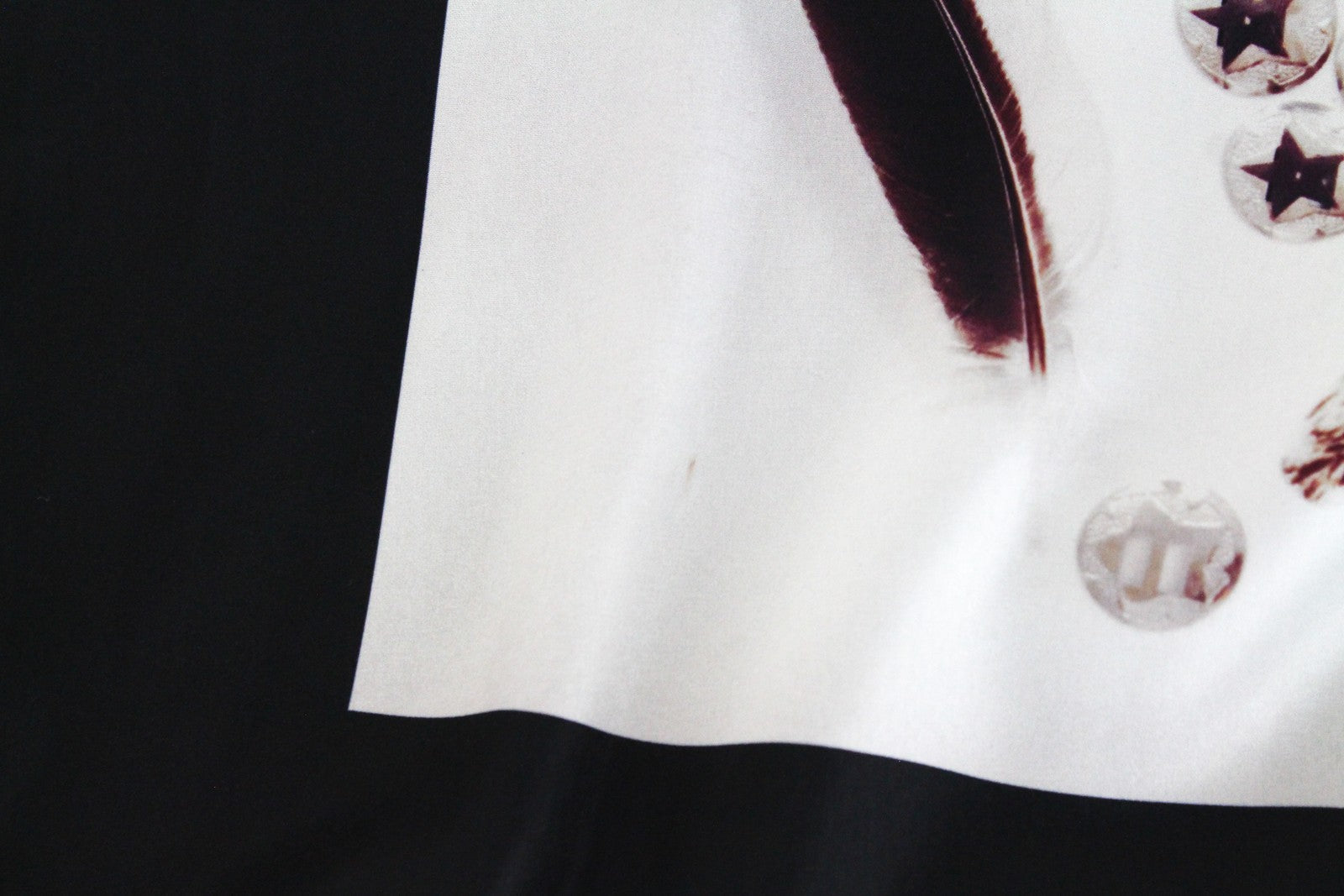 New with defects. Few pulled threads on front and faded area around the right shoulder on front. Please see added photos.