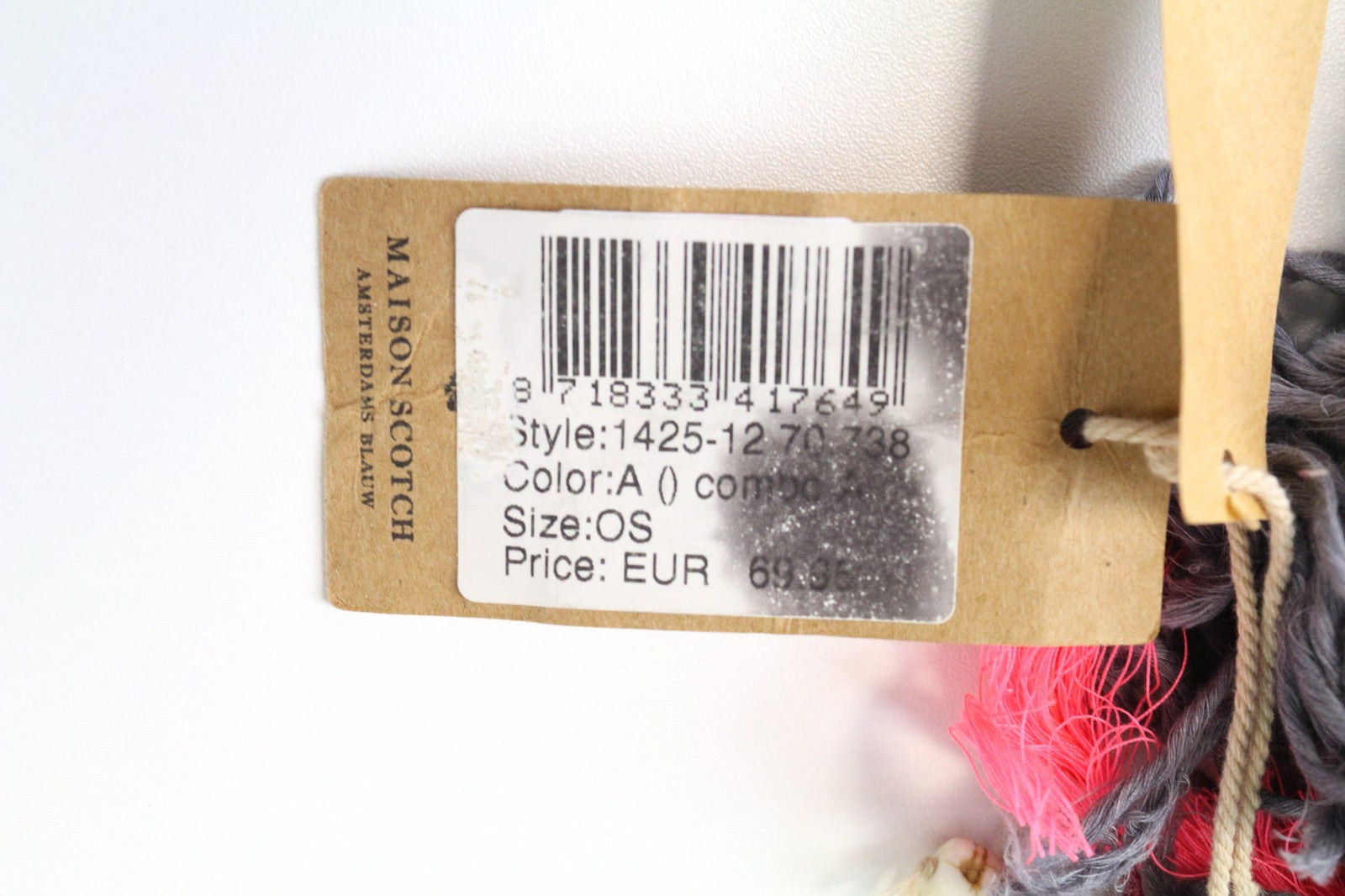 MAISON SCOTCH moteriškas pilkas megztas medvilninis plonas šalikas su kutais ir lengvu raštu