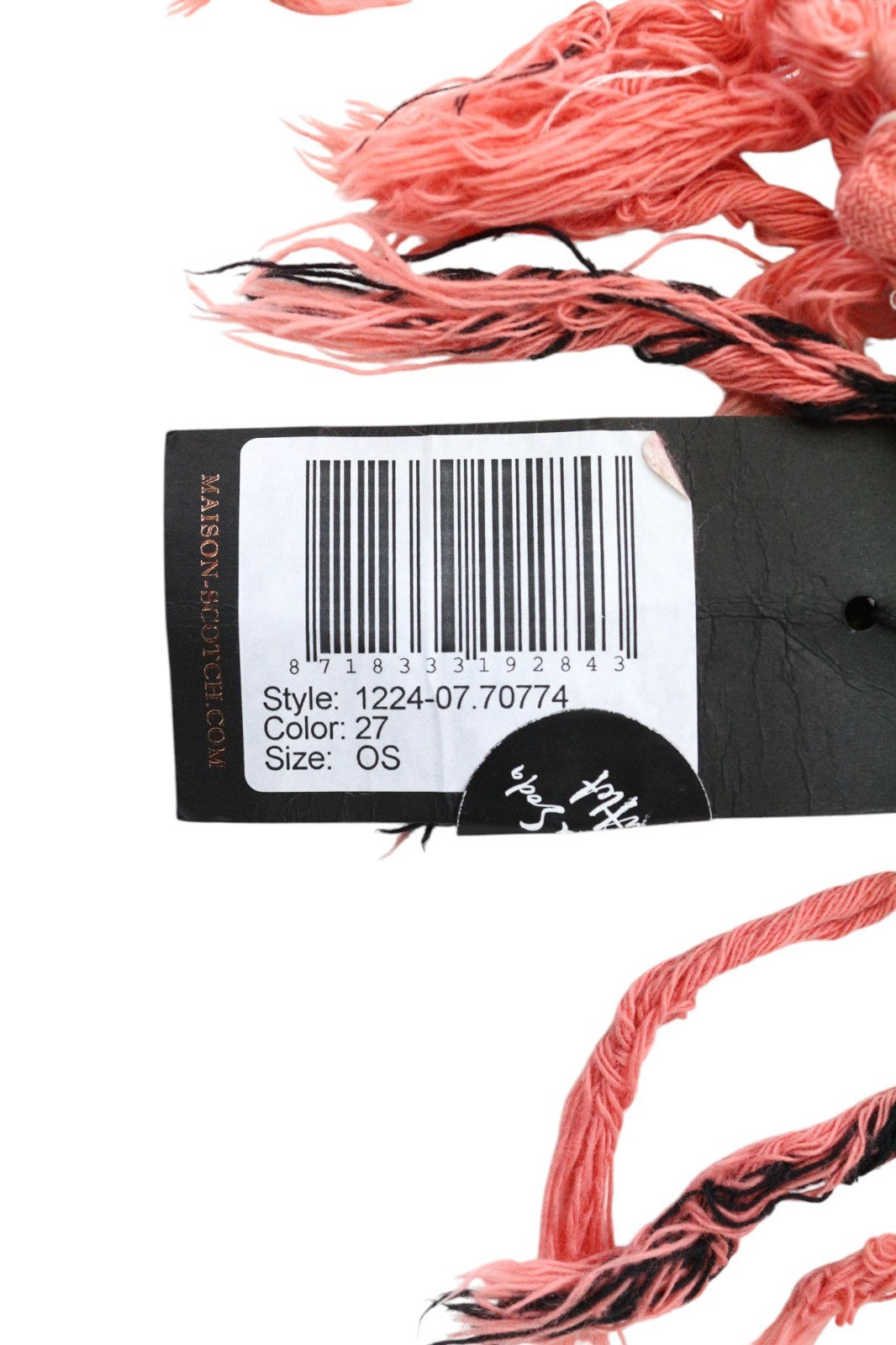 MAISON SCOTCH Women's Scarf OS Pink Striped Cotton Lightweight with Tassels