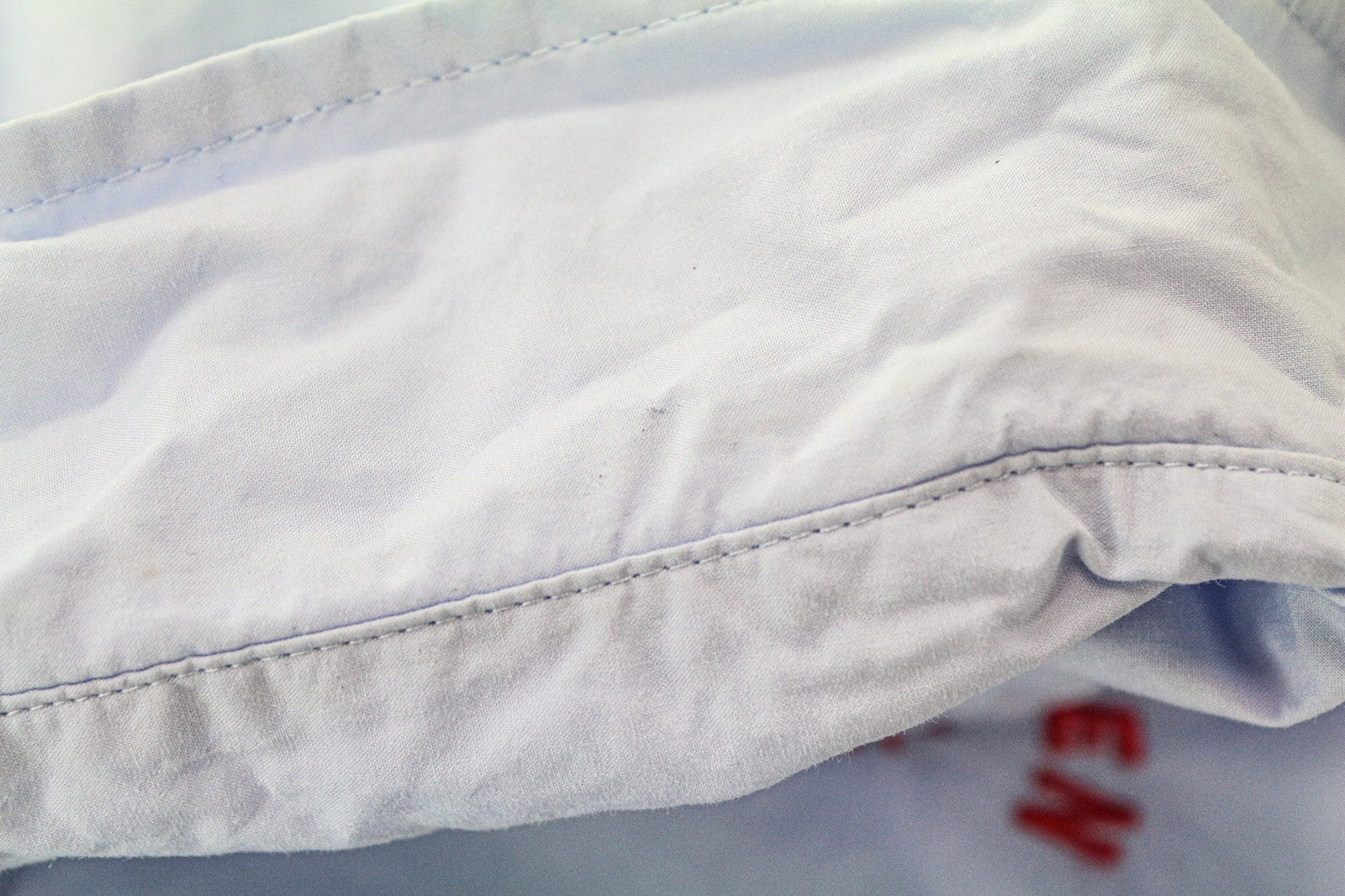 MAISON SCOTCH moteriški marškinėliai šviesiai mėlyni medvilniniai logotipai oficialios ilgomis rankovėmis M