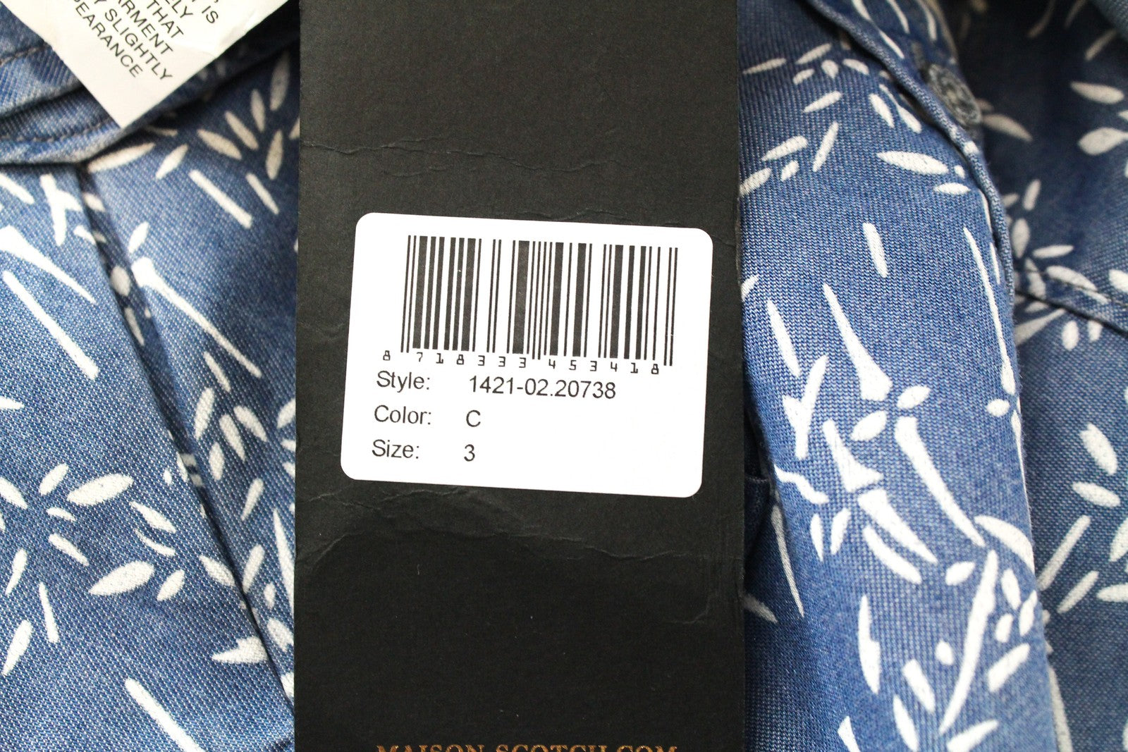 MAISON SCOTCH moteriški marškinėliai L dydžio, mėlyni, ilgomis rankovėmis, raštuoti