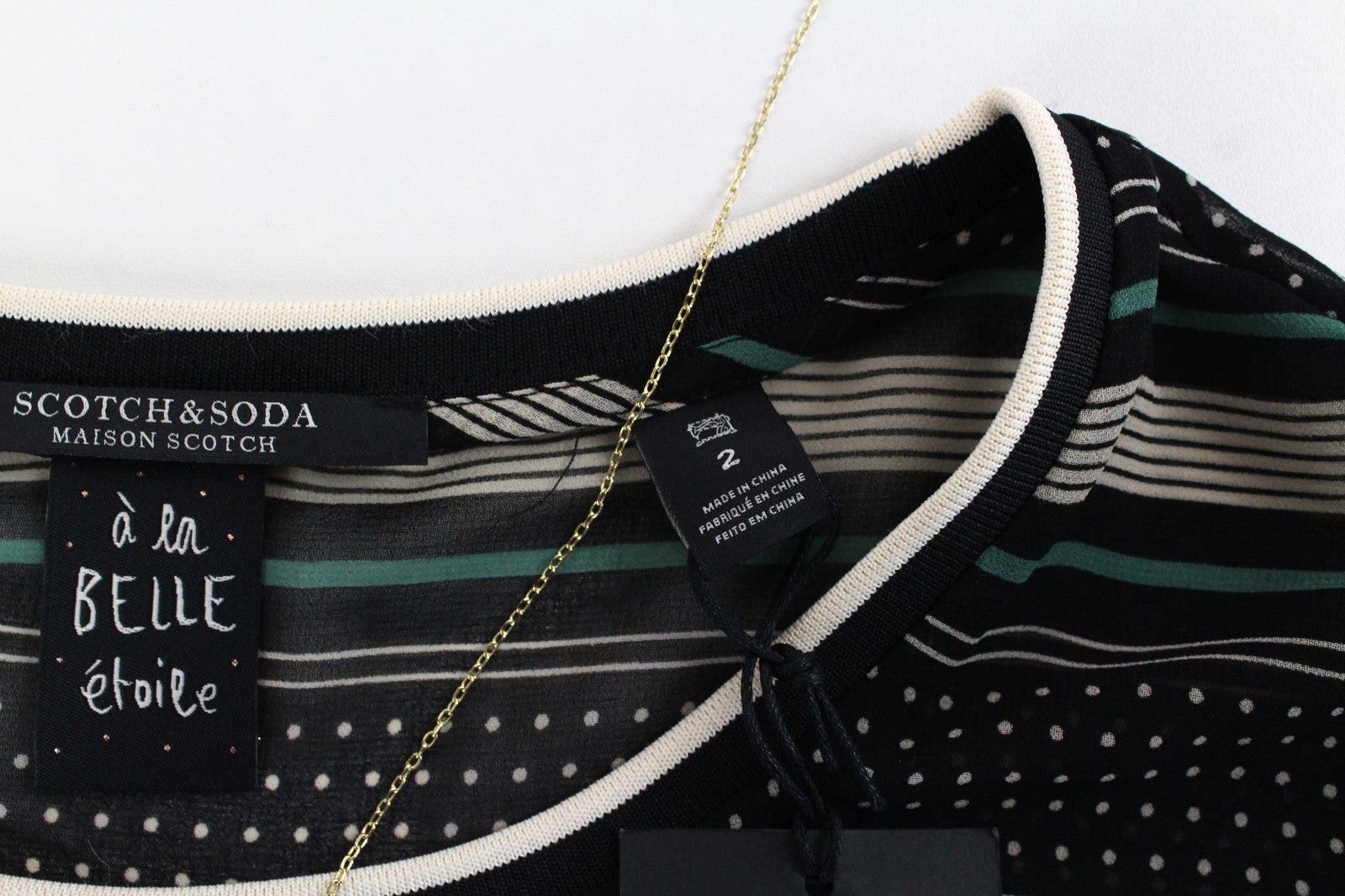 MAISON SCOTCH Womens T-Shirt M Black Green Patterned See-Through Short Sleeve