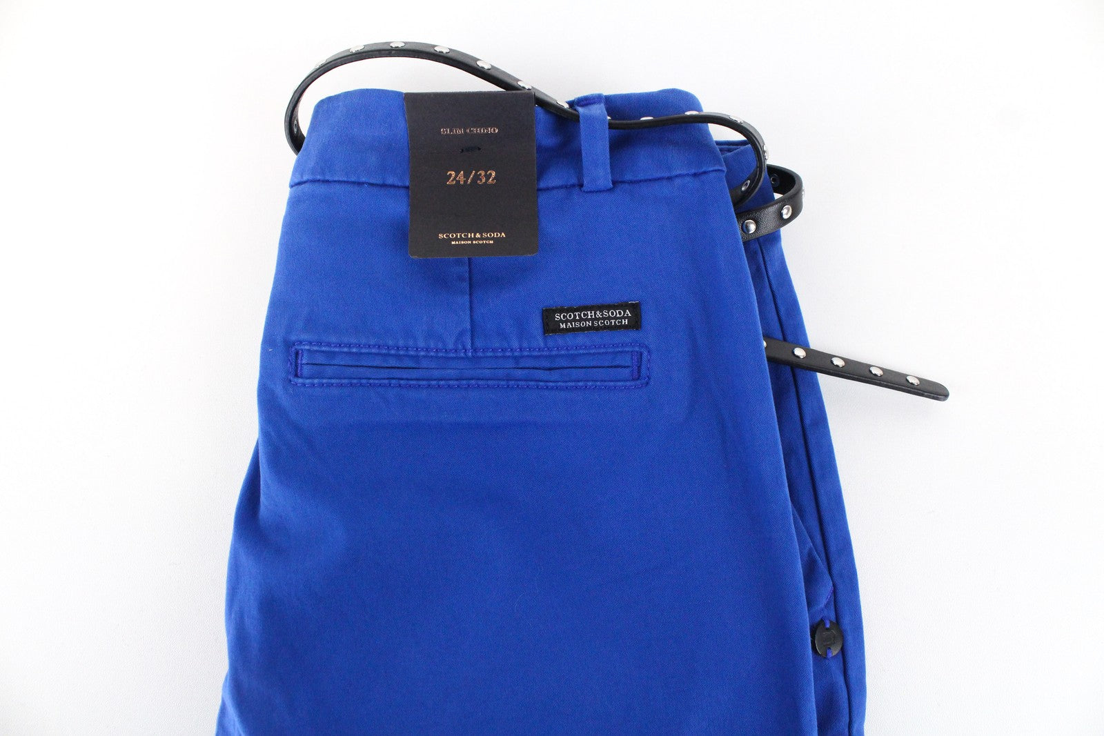 MAISON SCOTCH Womens W24/L32 Slim Cotton Trousers Blue Belted Stretchy Style