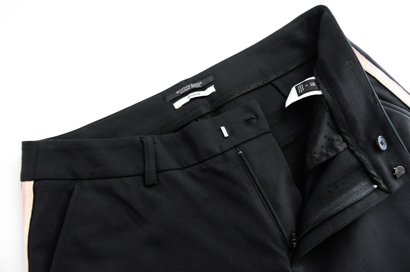 MAISON SCOTCH moteriškos kelnės S, juodos šoninės juostelės, klasikinio stiliaus, su kišenėmis