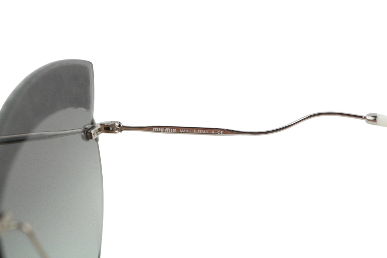 MIU MIU 58T moteriški akiniai nuo saulės su sidabro spalvos blizgiomis detalėmis ir katės akių formos rėmeliu, rekomenduojama kaina – 300 €