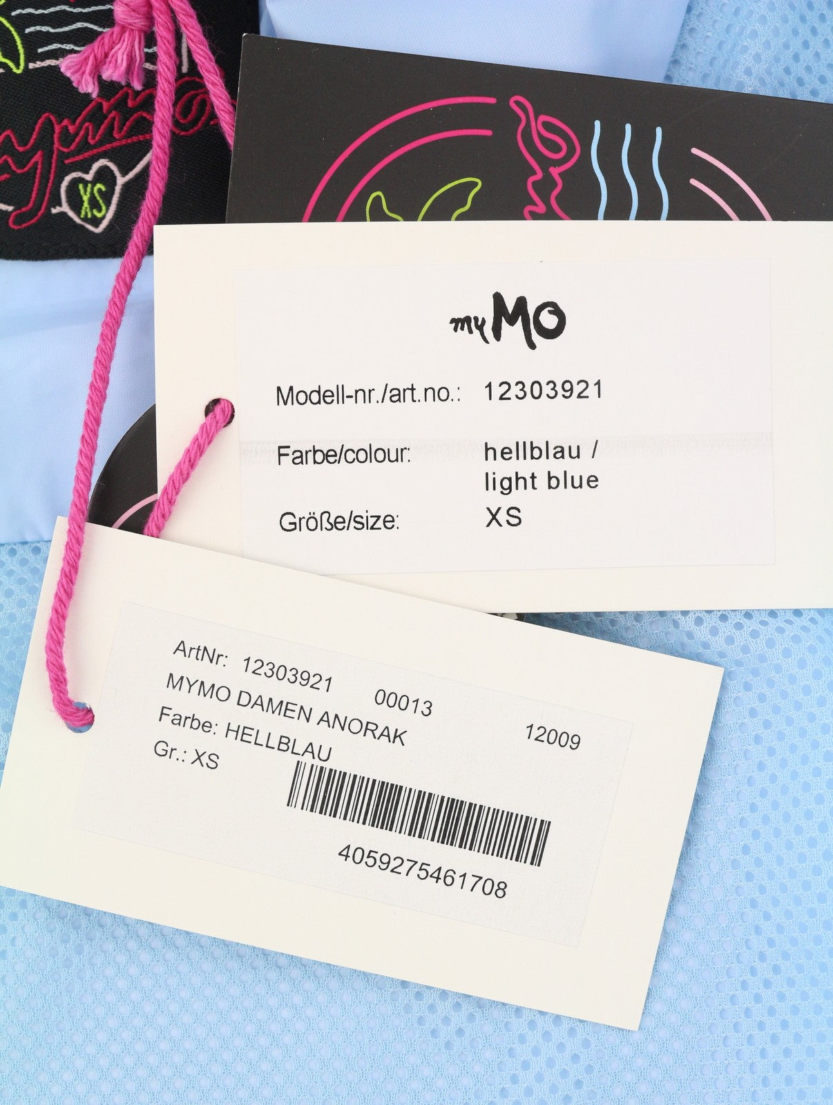 MYMO Women Jacket XS Light Blue Hooded Drawstring Waist Parka Lightweight