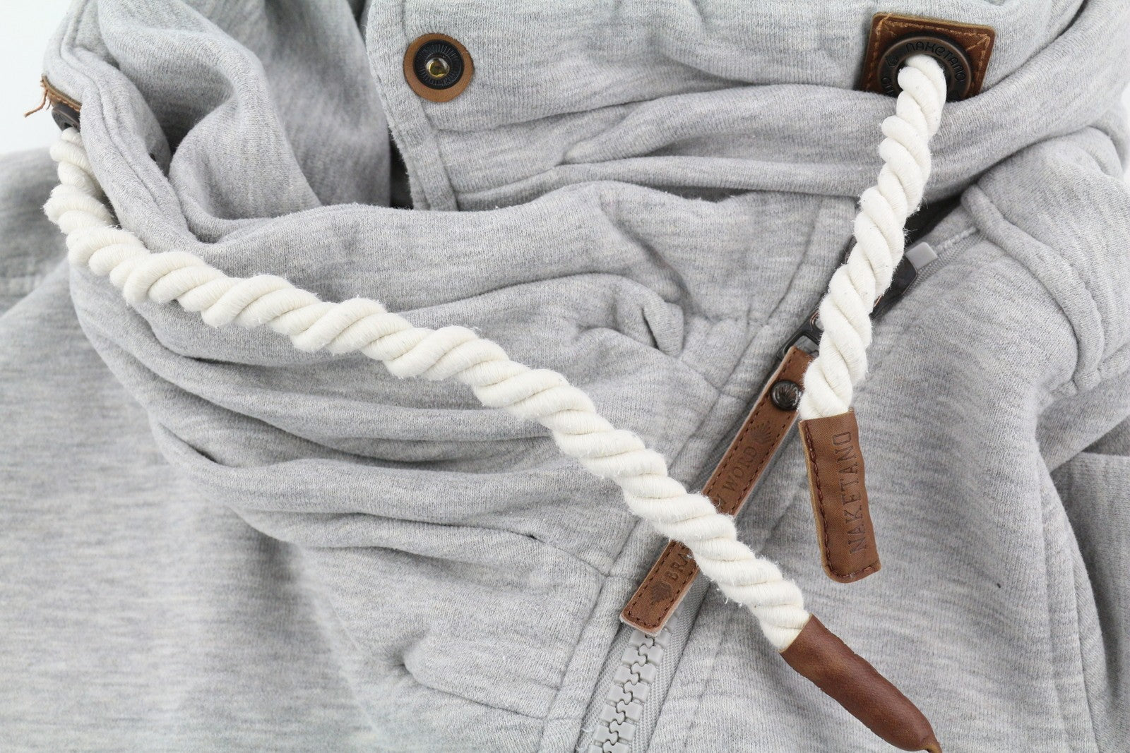 NAKETANO moteriškas džemperis L melanžo pilkas pilnas užtrauktukas su aukštomis apykaklės kišenėmis ilgomis rankovėmis