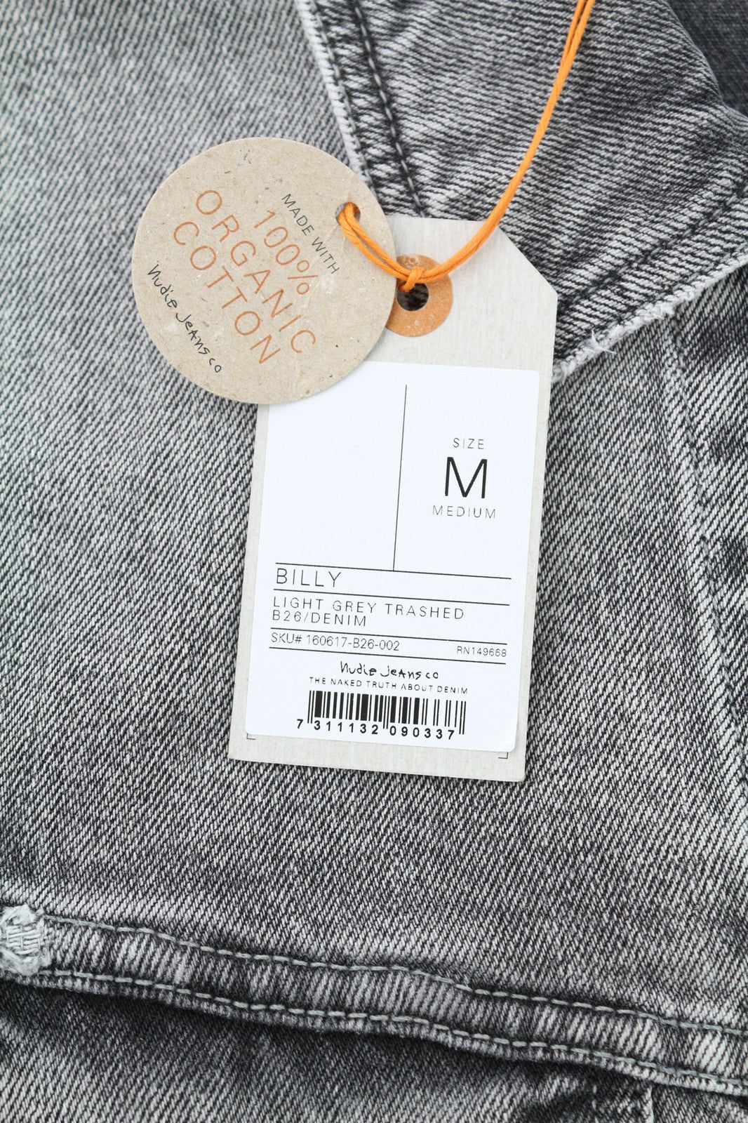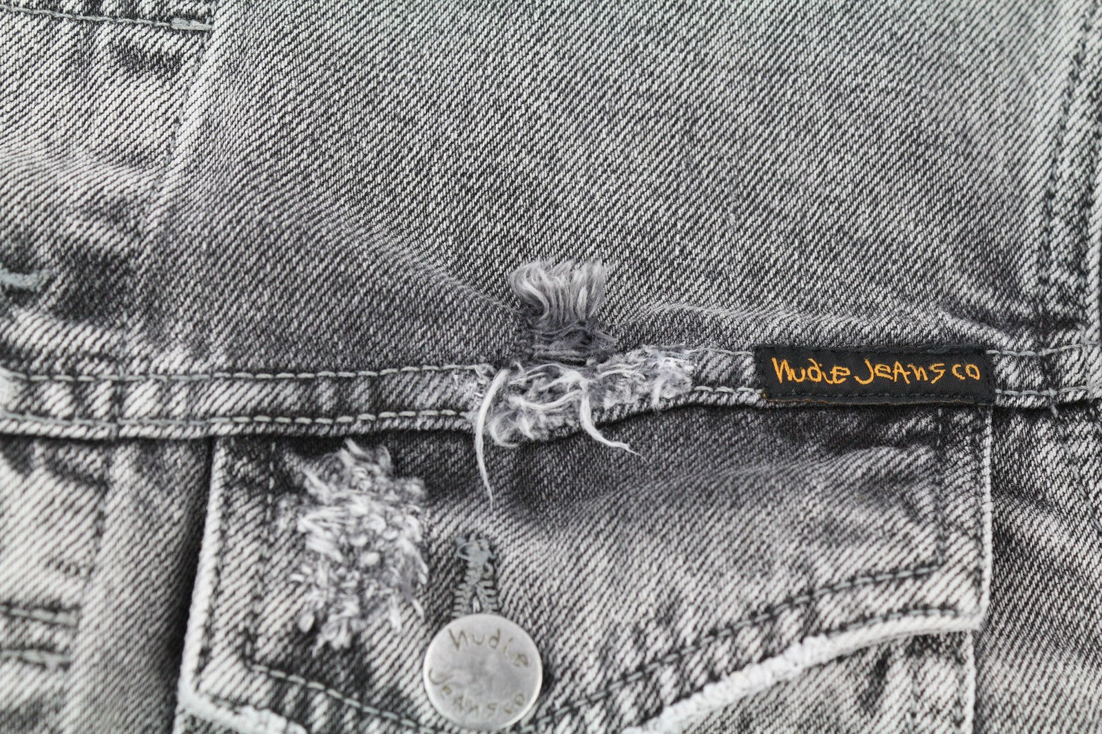 NUDIE Billy šviesiai pilka džinsinė vyriška striukė M su išblukusia sagų užsegimu