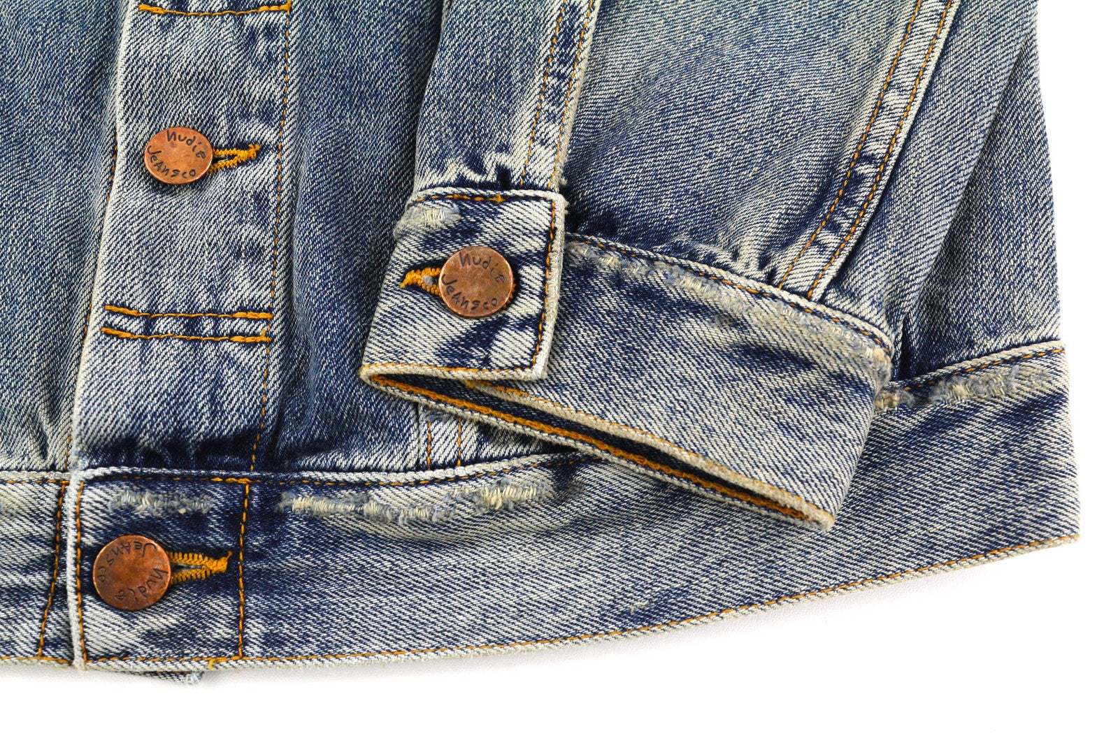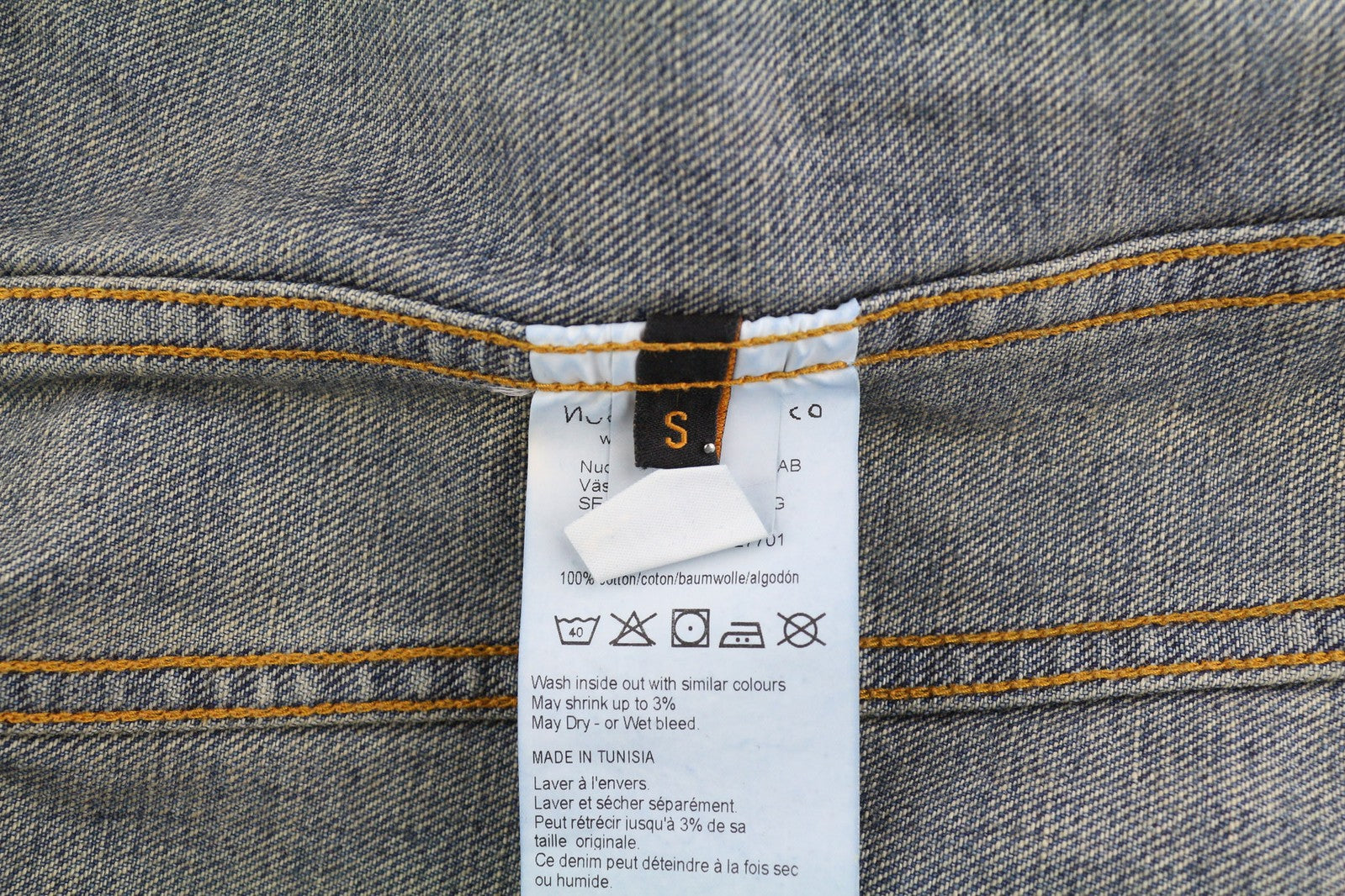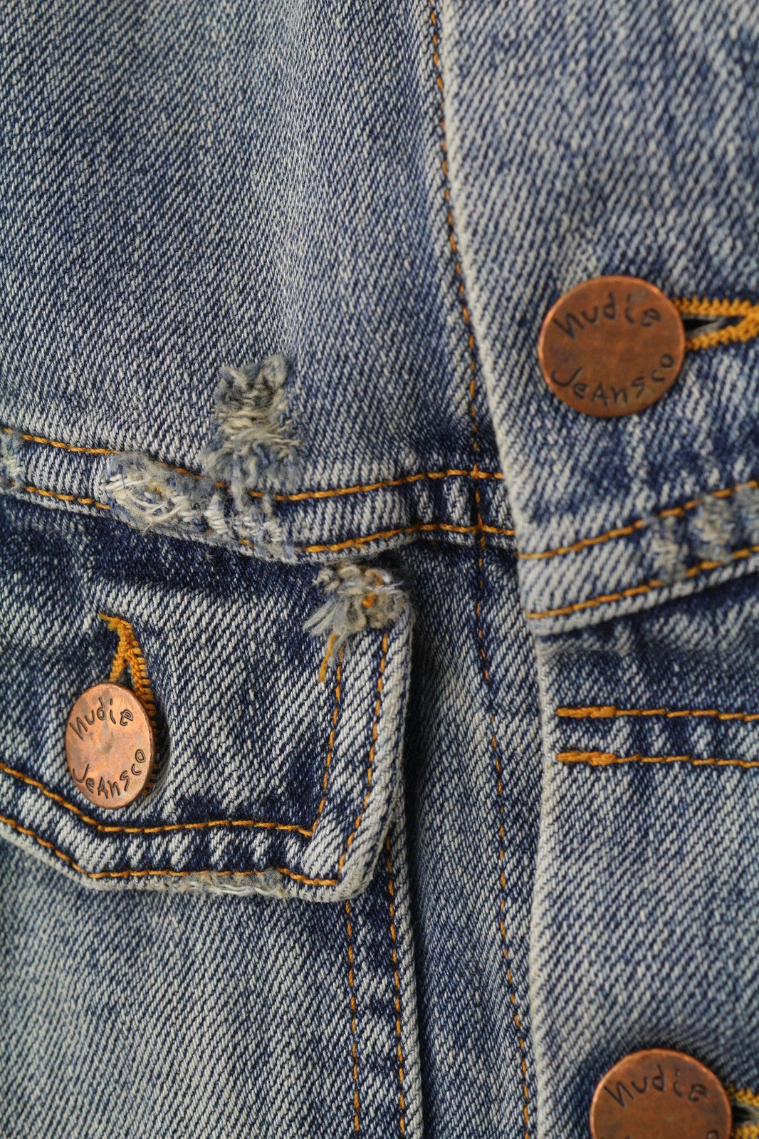 NUDIE Billy vyriška striukė S, žvilganti indigo spalvos, plėšyta, sagomis užsegama apykakle