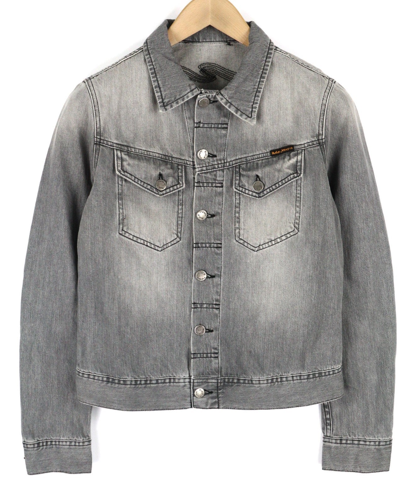 NUDIE JEANS Conny vyriška striukė S su saulės balinta juoda pilka skalbta polo marškinėliai su sagomis