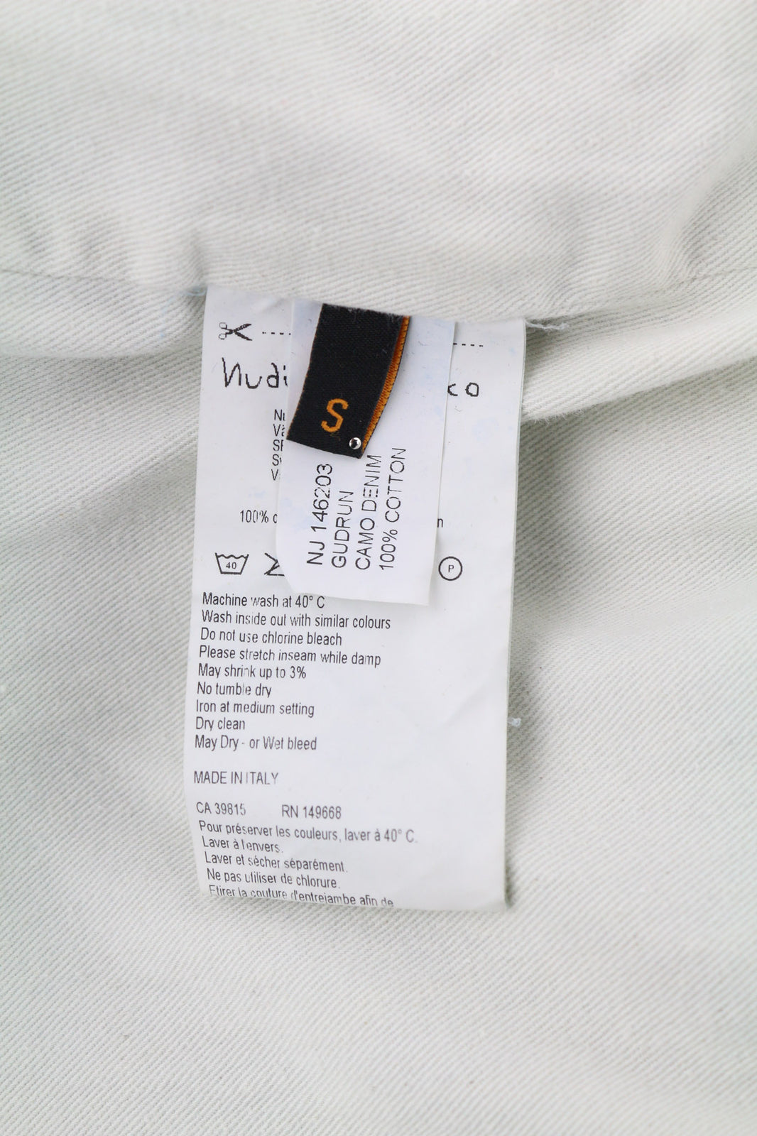NUDIE JEANS Gudrun Camo džinsinis moteriškas švarkas S mėlynas raštuotas medvilninis skalbtas bomber