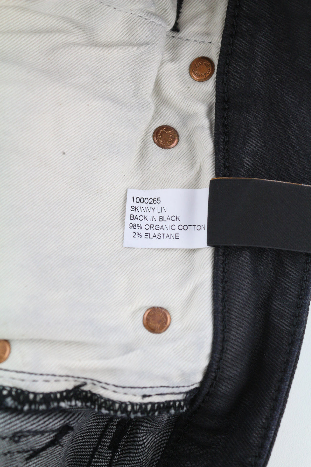 NUDIE JEANS Skinny Lin Men Jeans W28/L32 Black In Black Coated Organic Denim