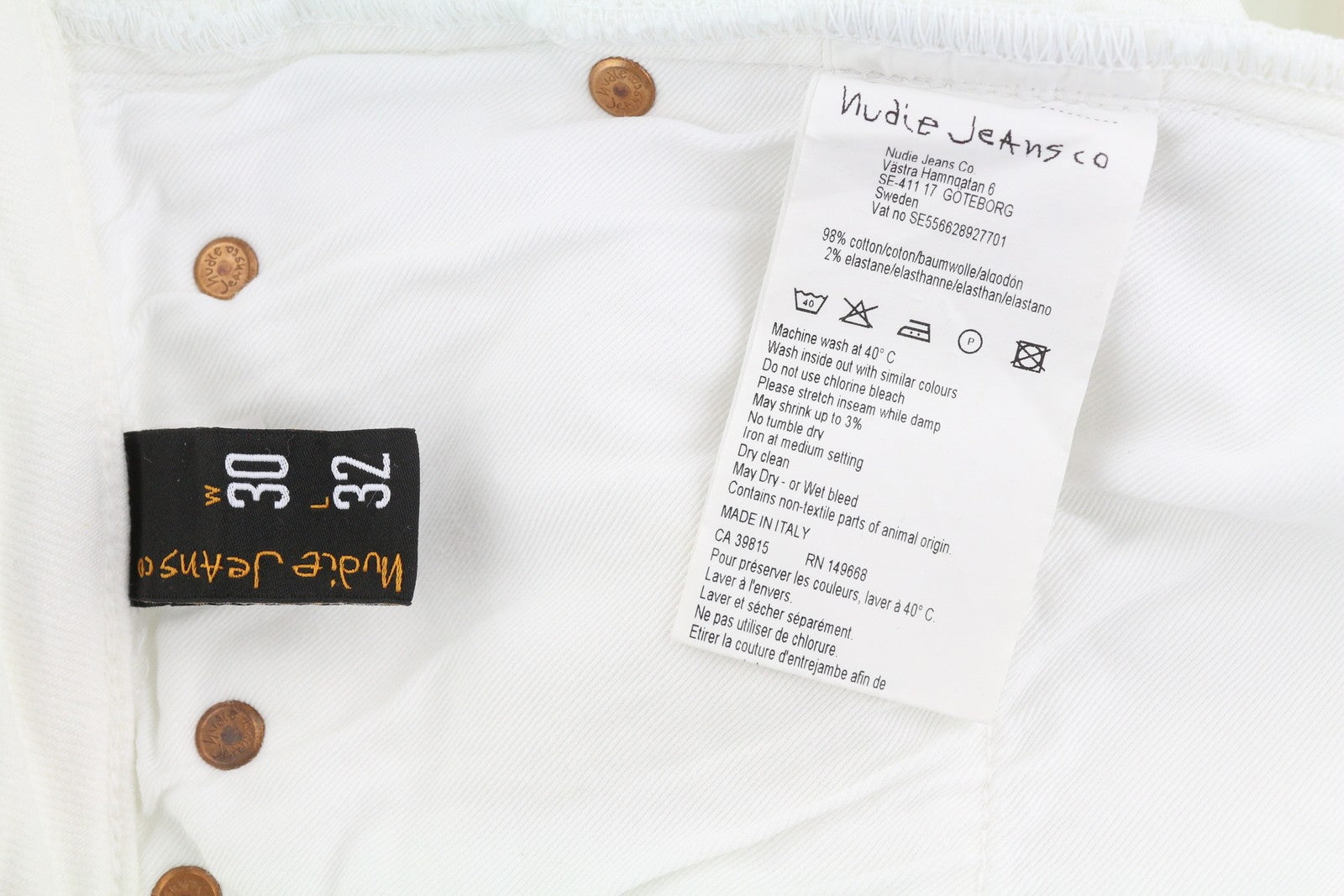 NUDIE JEANS Skinny Lin Men Jeans W30/L32 Denim Blazing White Zip Fly 5-Pockets