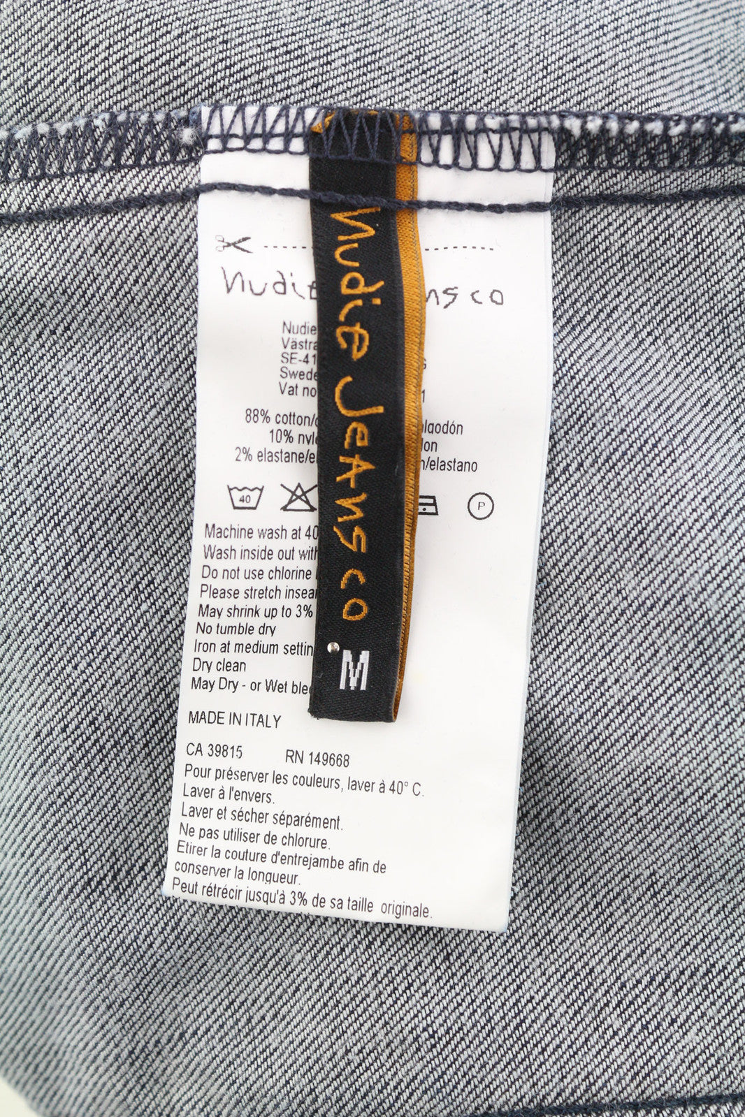 NUDIE Tove moteriška striukė M mėlyna aksominė apykaklė sagomis tamsiai ilgomis rankovėmis logotipas