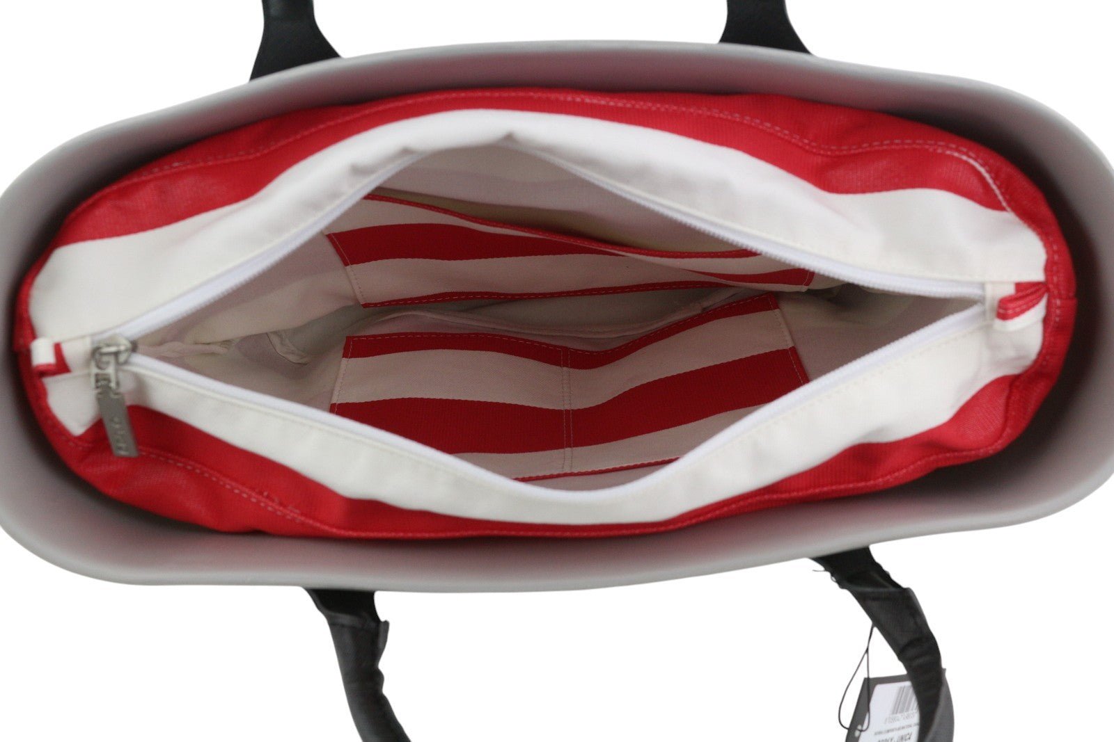 O BAG moteriškas krepšys OS šviesiai pilkas, vidinis, užtrauktuku, dvigubomis rankenomis, kvadratinis, laisvalaikio stiliaus.
