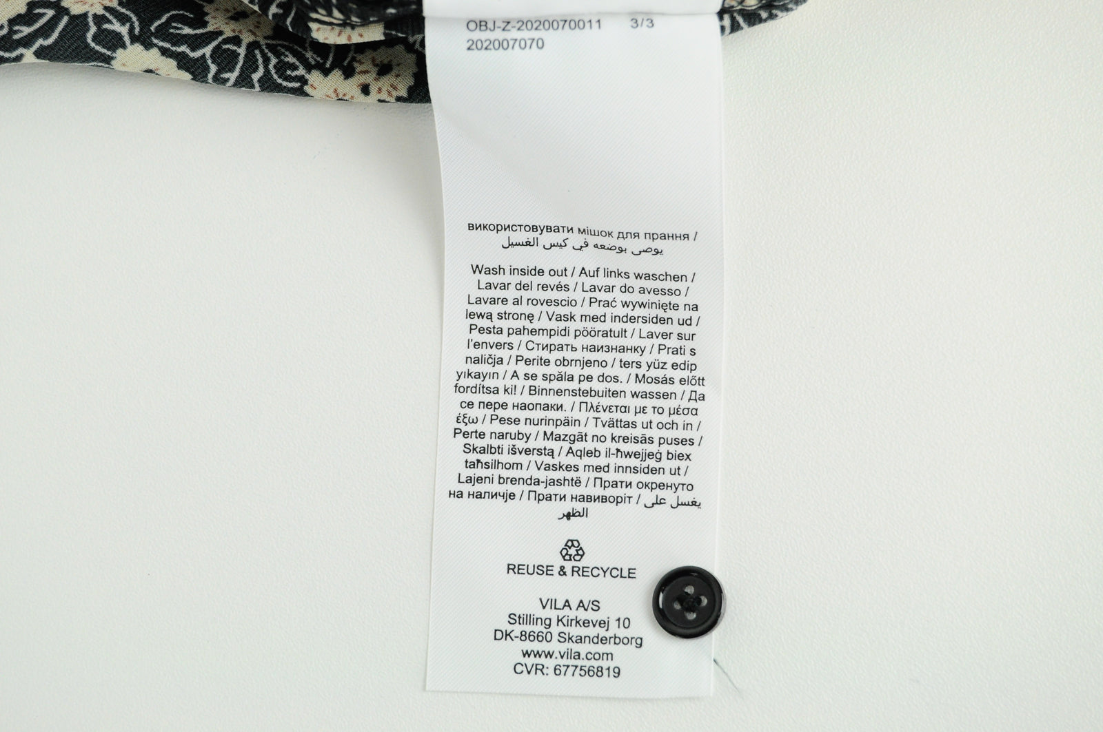 OBJECT Women Dress EU38 Black Floral Pattern Long Sleeve V-Neck Half-Buttoned