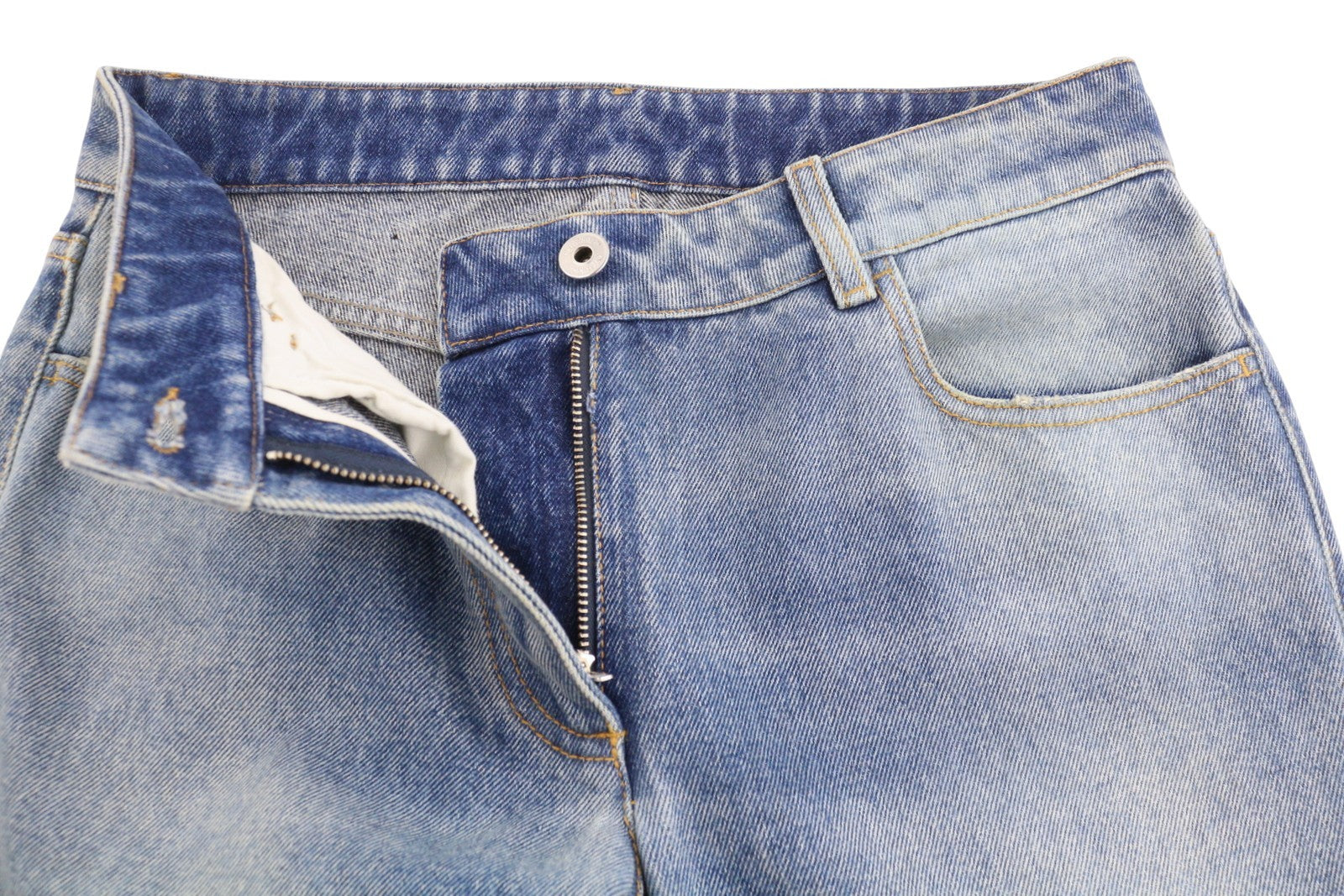 OFF-WHITE c/o VIRGIL ABLOH Slim Flared 5PKT moteriški džinsai W26 mėlyni išblukę bateliai