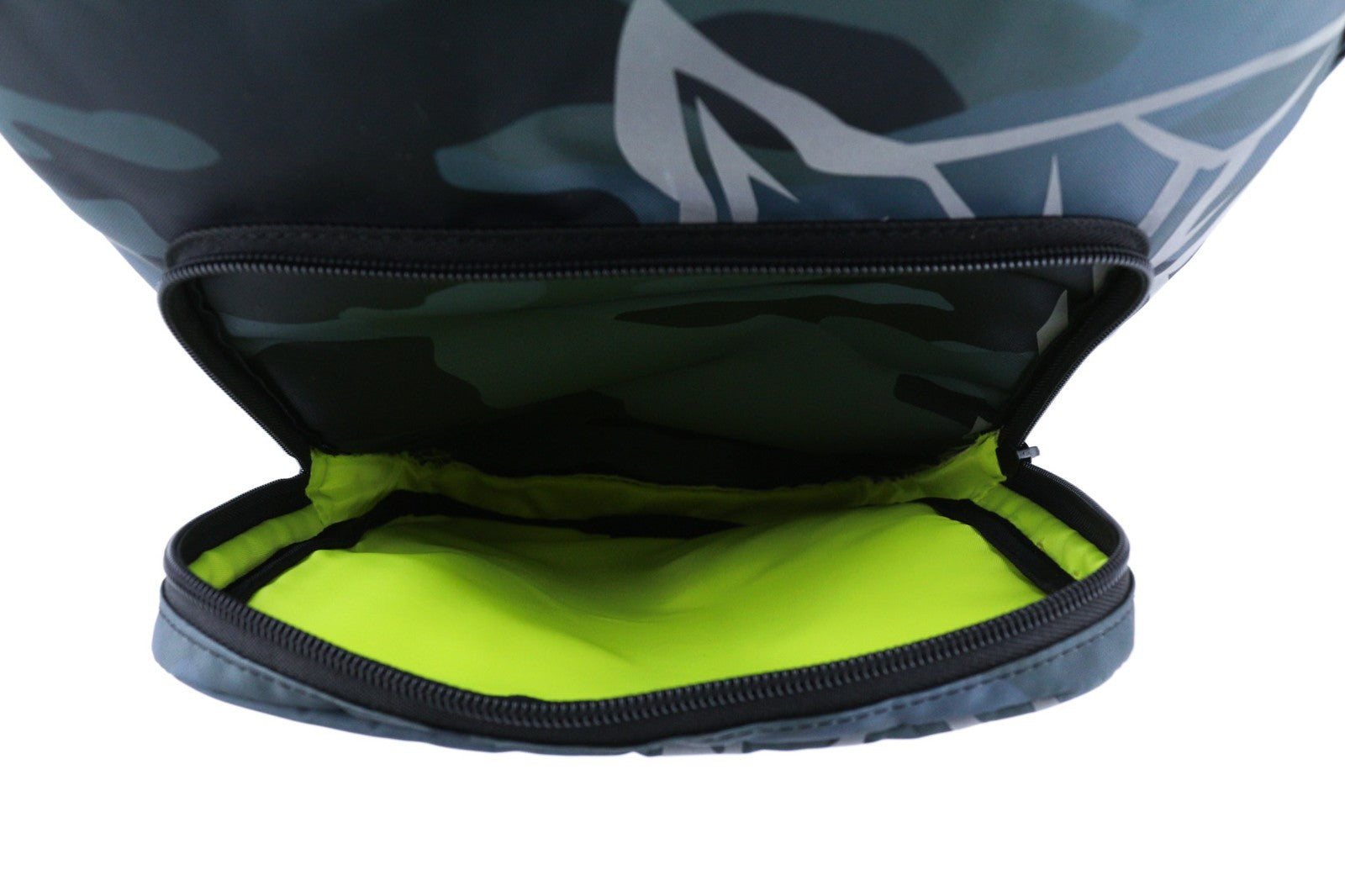 PHILIPP PLEIN vyriška kuprinė, vieno dydžio, „Philadelphia“ kamufliažinė, su dviem rankenomis ir užtrauktuku.