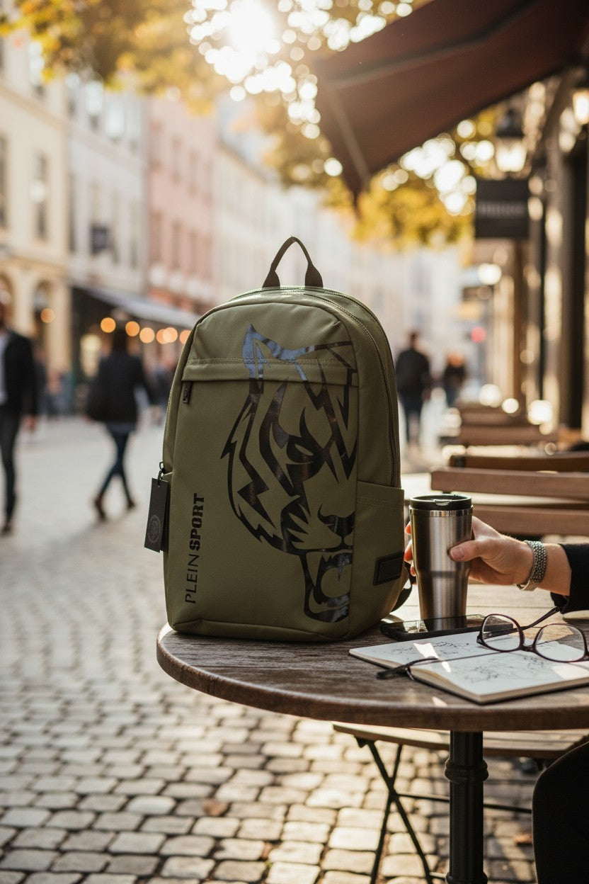 PHILIPP PLEIN vyriška kuprinė, vieno dydžio, „Philadelphia“ žalia, su užtrauktuku ir pamušalu.
