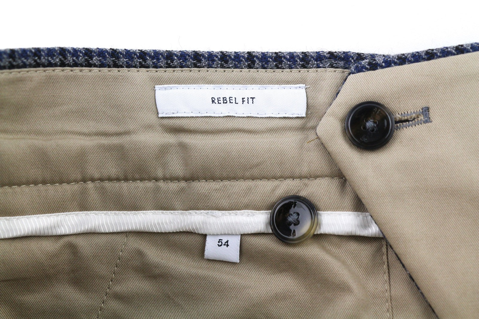 PT TORINO vyriškos kelnės 54 W39 Rebel mėlyna pilka raštuota grynos vilnos klostuota suknelė