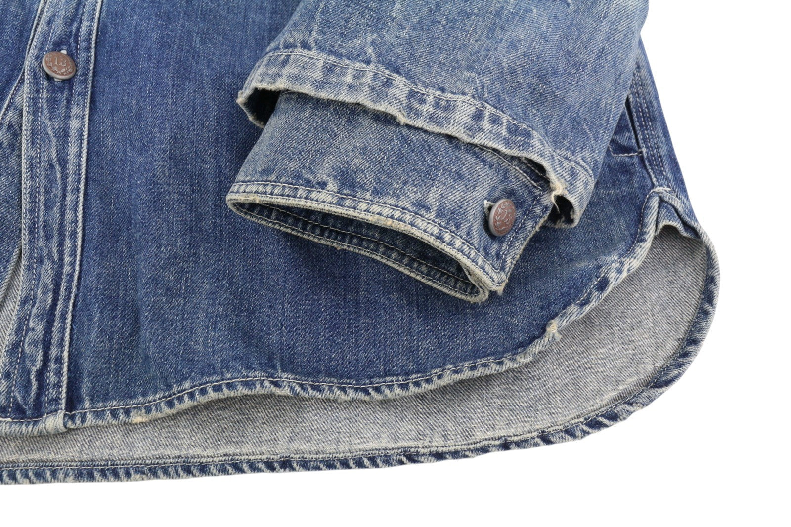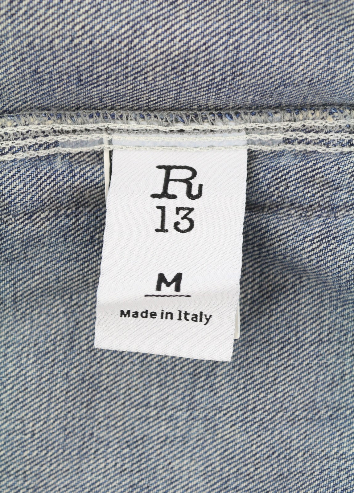 R13 Alice dvigubų marškinėlių moteriškas švarkas M Kellen Tex dideli marškinėliai su sagomis, išblukusi mėlyna