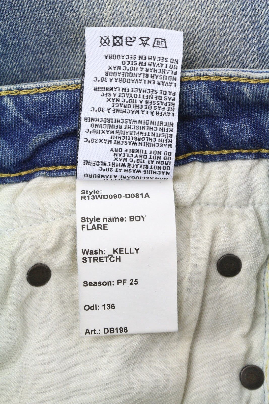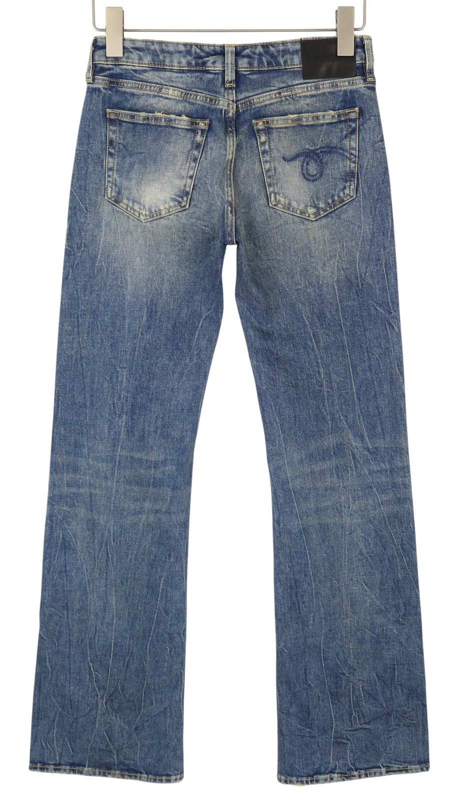 R13 berniukiški platėjantys moteriški džinsai 25 Kelly tamprūs, žemo liemens, ūsai, išblukusi mėlyna spalva PF25