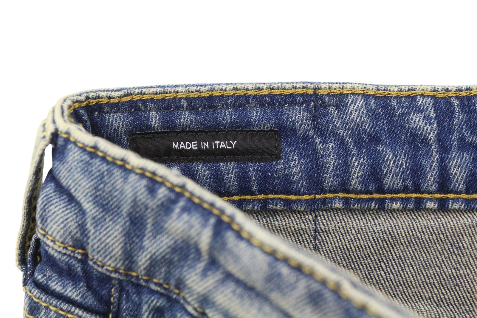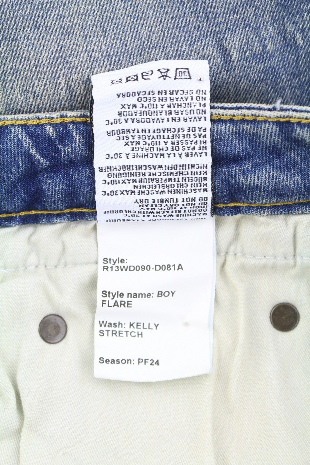 R13 berniukiški platėjantys moteriški džinsai 26 Kelly tamprūs platėjantys džinsai su išblukusiais ūsais mėlyni RRP645