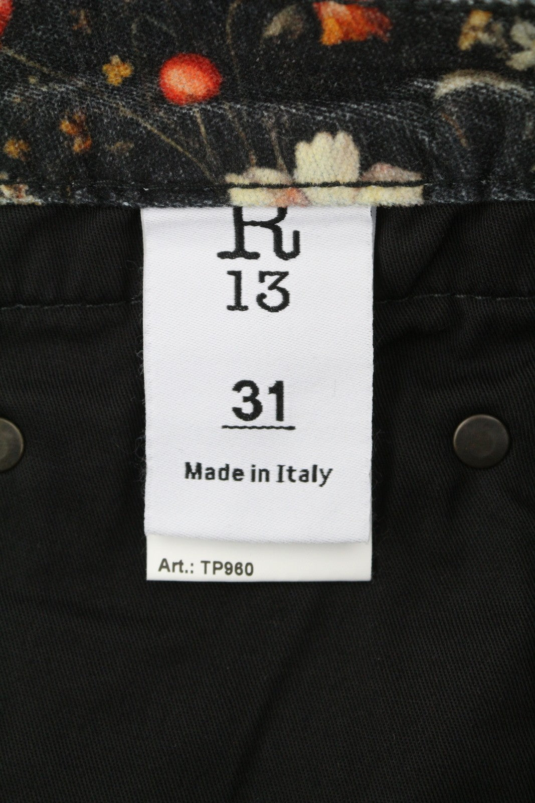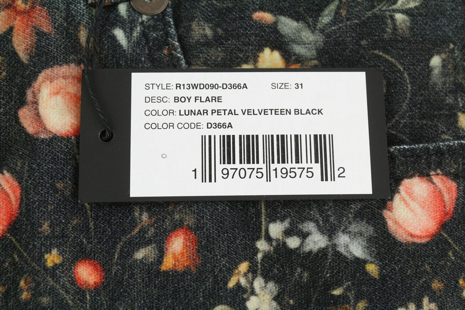R13 berniukiški platėjantys moteriški džinsai 31 mėnulio žiedlapių aksominis gėlių raštas FW25 RRP799