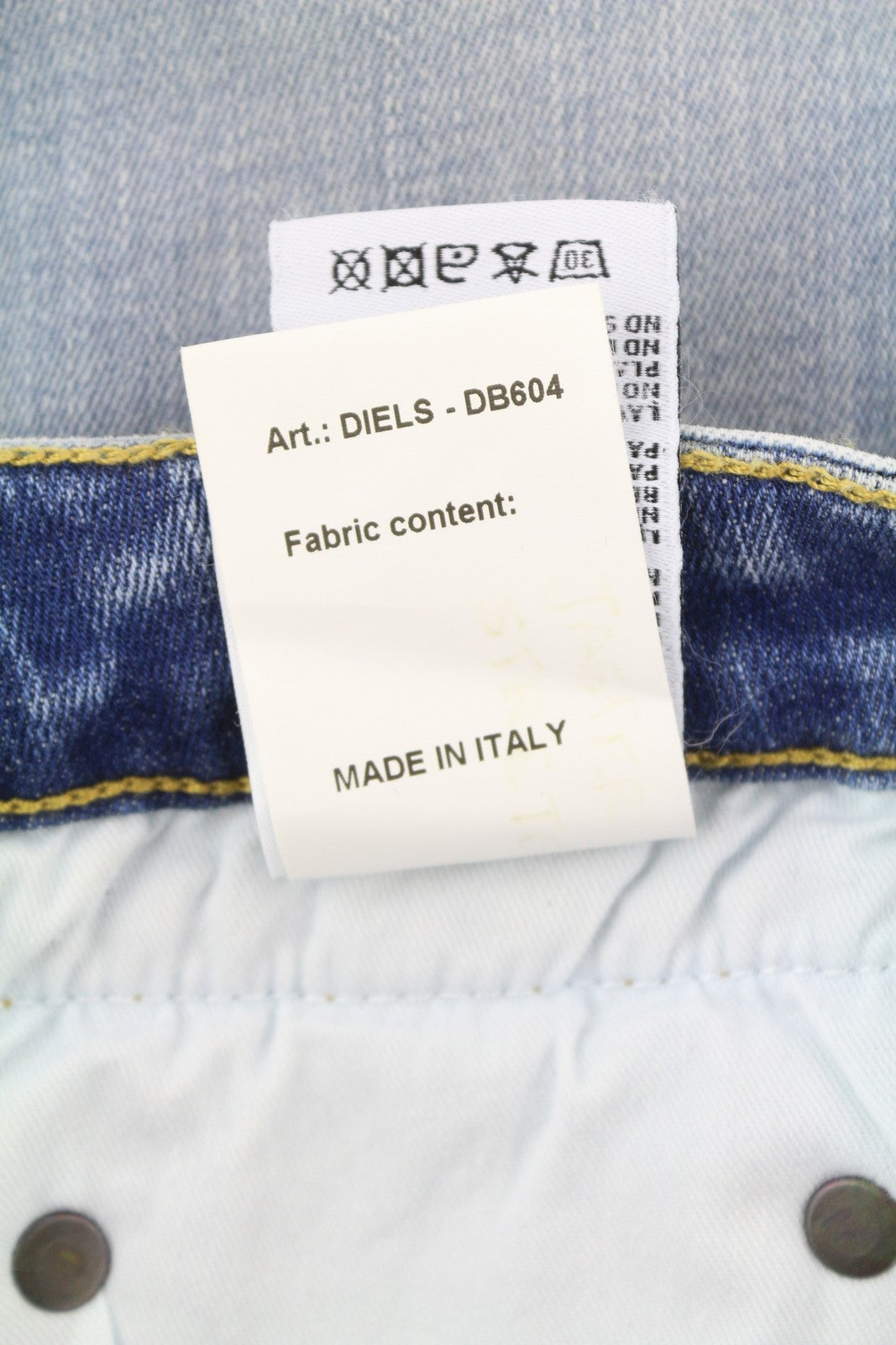 R13 berniukiški aptempti džinsai moterims 27 mėlyni, skalbti, išblukę, iki kulkšnių, trumpinti su užtrauktuku.