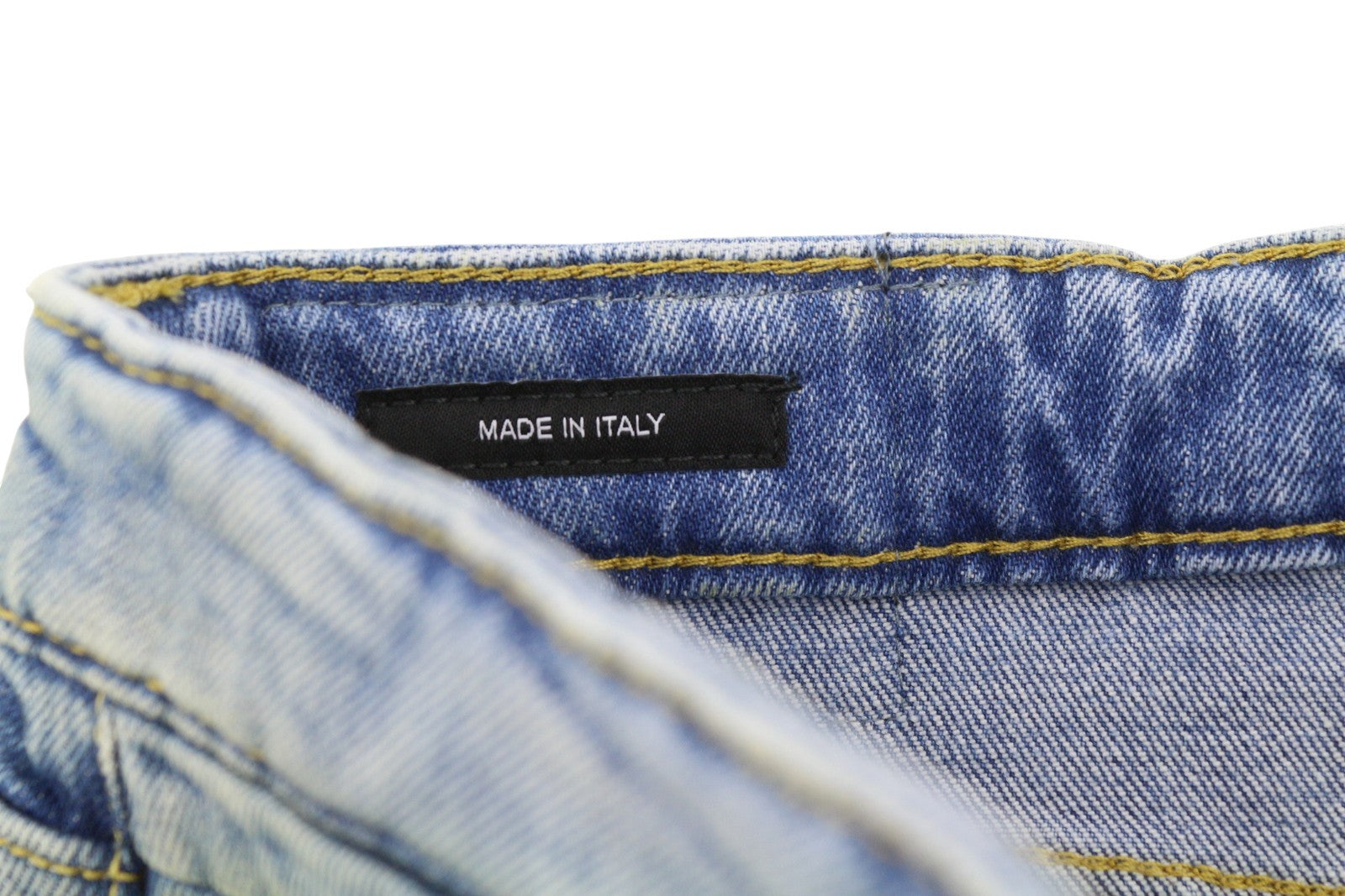 R13 berniukiški tiesūs džinsai su plėšytomis juostomis, 27 dydžio, Jasper tamprūs, žemo liemens, apibarstyti mėlyni, FW25