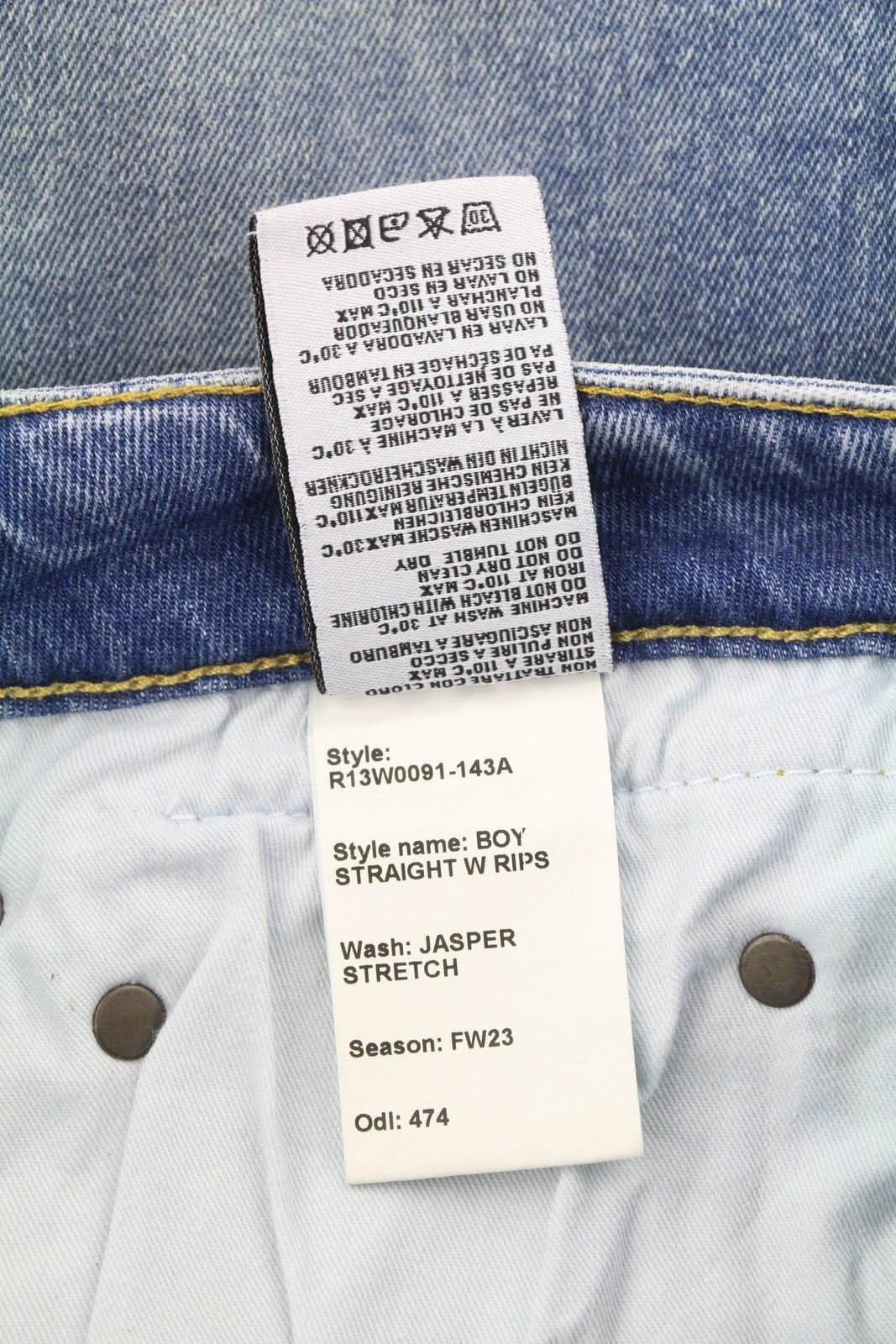 R13 Boy Straight W Rips Women Jeans 30 Jasper Stretch Faded Cropped Denim