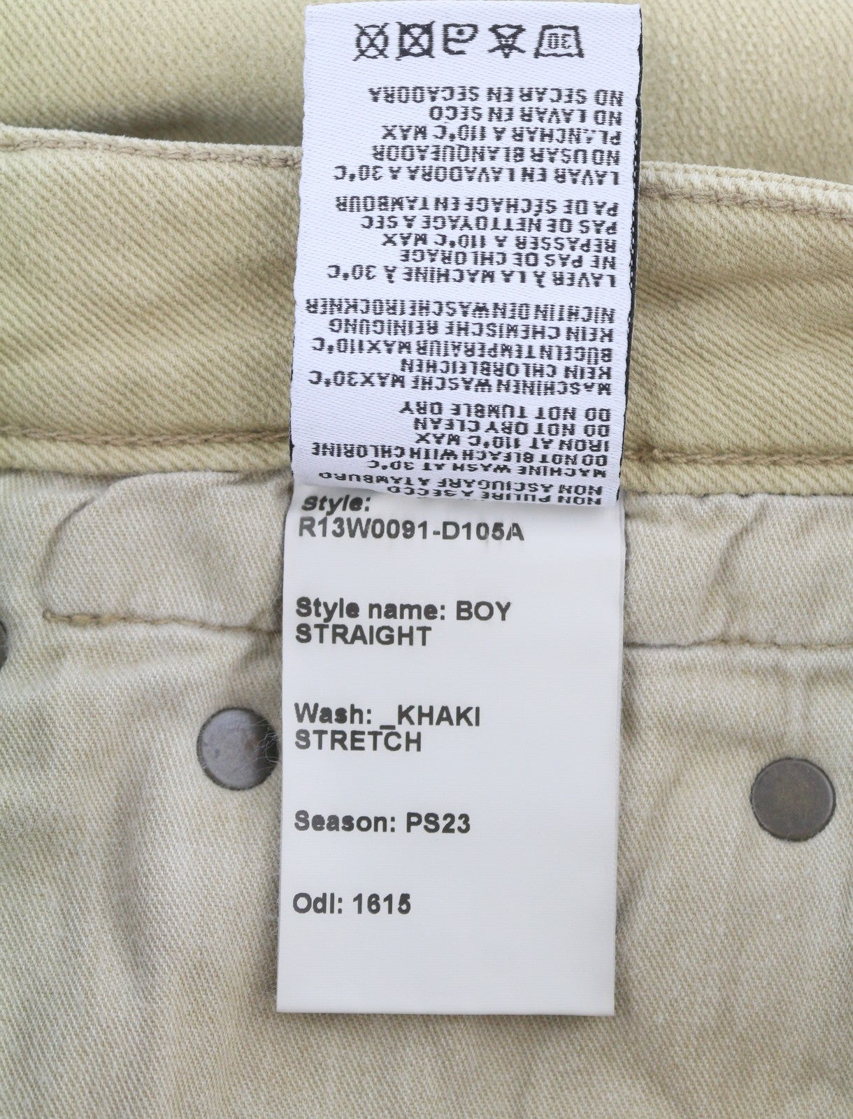 R13 Boy Straight Women Jeans 24 Khaki Stretch Washed Cropped Ankle Zip RRP€699