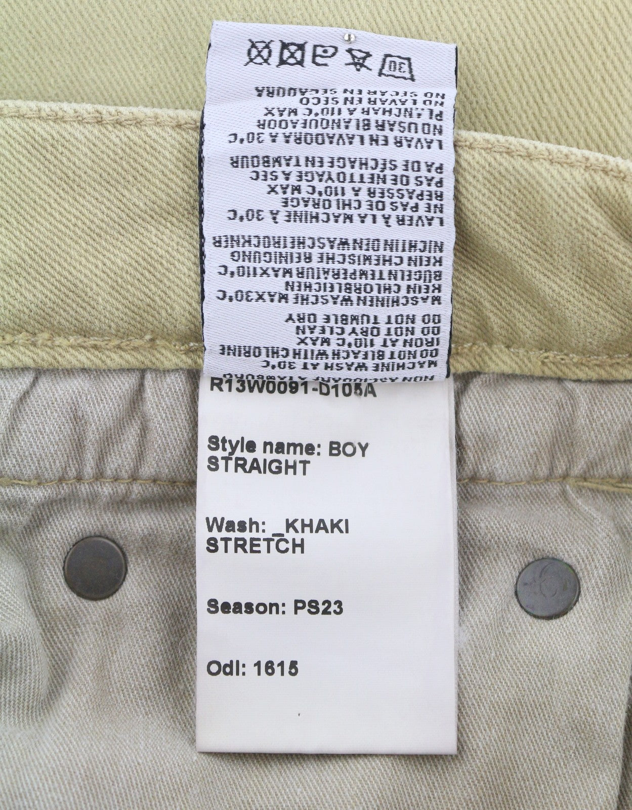 R13 berniukiški tiesūs moteriški džinsai, 24 chaki spalvos, tamprūs, blukinti, iki kulkšnių, laisvalaikio, RRP 699 €
