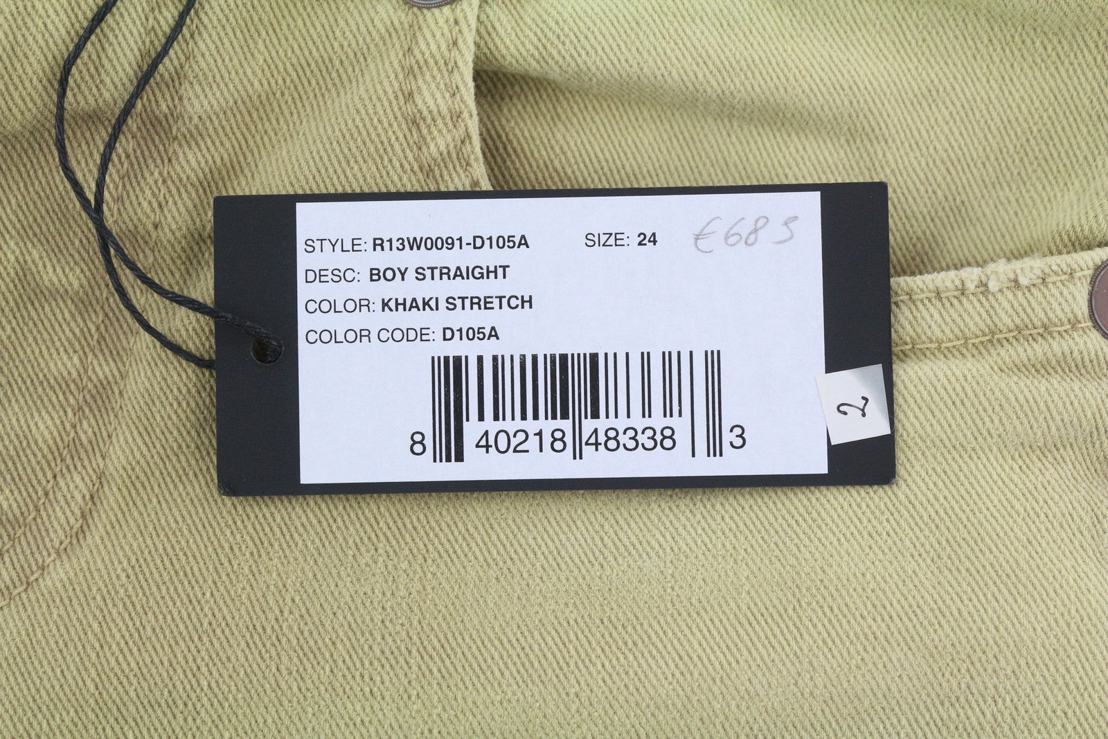 R13 Boy Straight Women Jeans 24 Khaki Stretchy Washed Ankle Length Logo RRP€699