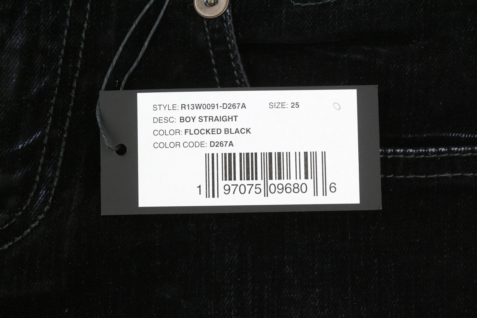 R13 berniukiški tiesūs moteriški džinsai 25 juodi aksominiai trumpinti iki kulkšnių, tamsūs