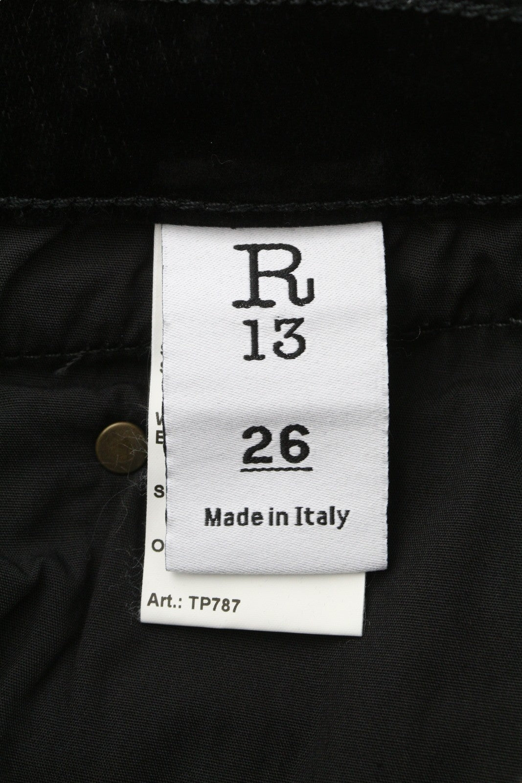 R13 berniukiški tiesūs moteriški džinsai 26 juodi aksominiai trumpinti iki kulkšnių, tamsūs