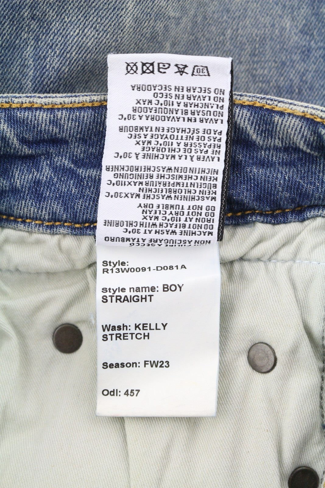 R13 Boy Straight Women Jeans 26 Kelly Stretch Washed Faded Cropped Zip RRP€645