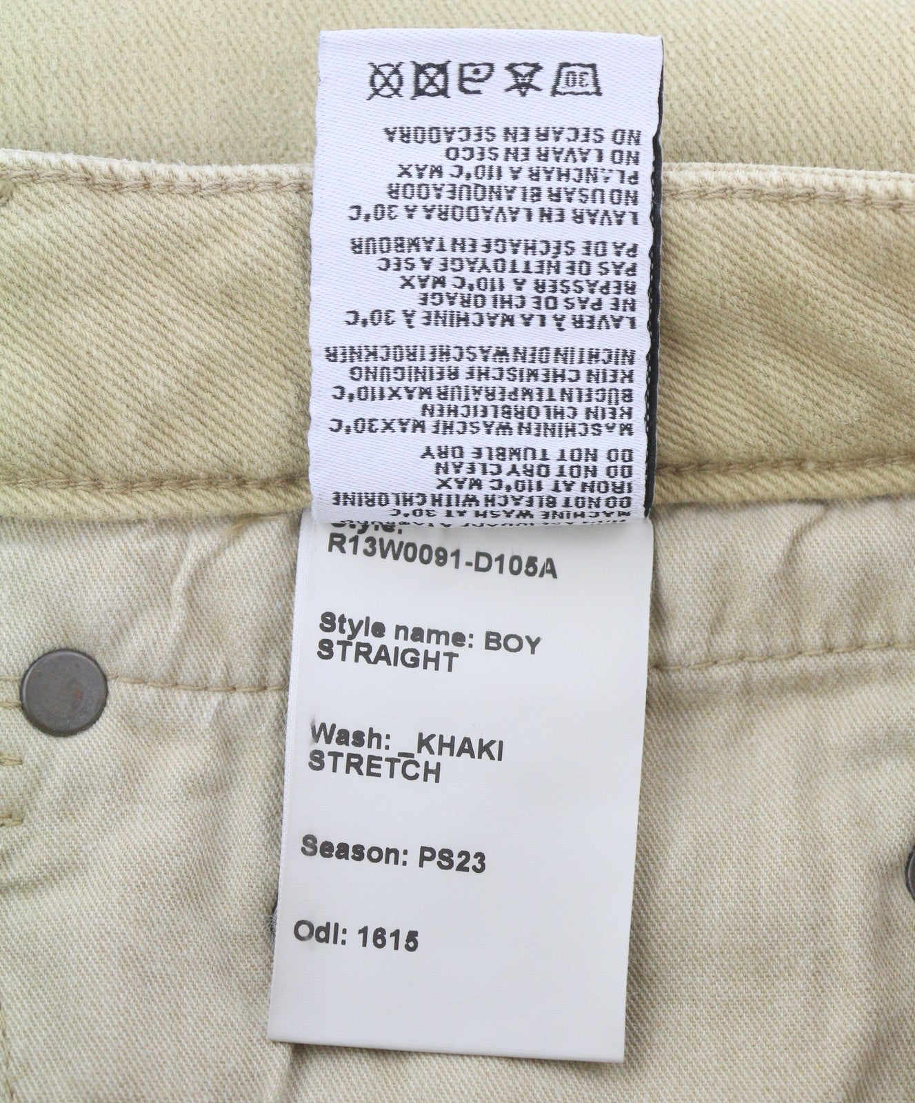 R13 berniukiški tiesūs moteriški džinsai, 26 chaki spalvos, tamprūs, išblukę, trumpinti iki kulkšnių, rekomenduojama kaina – 699 €