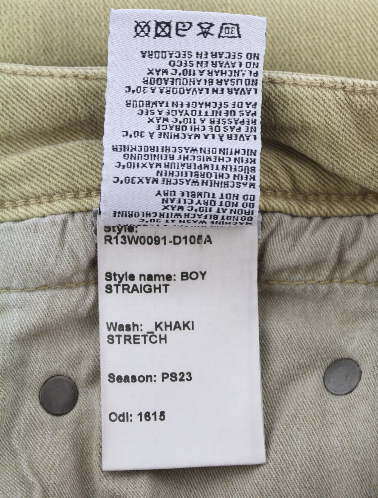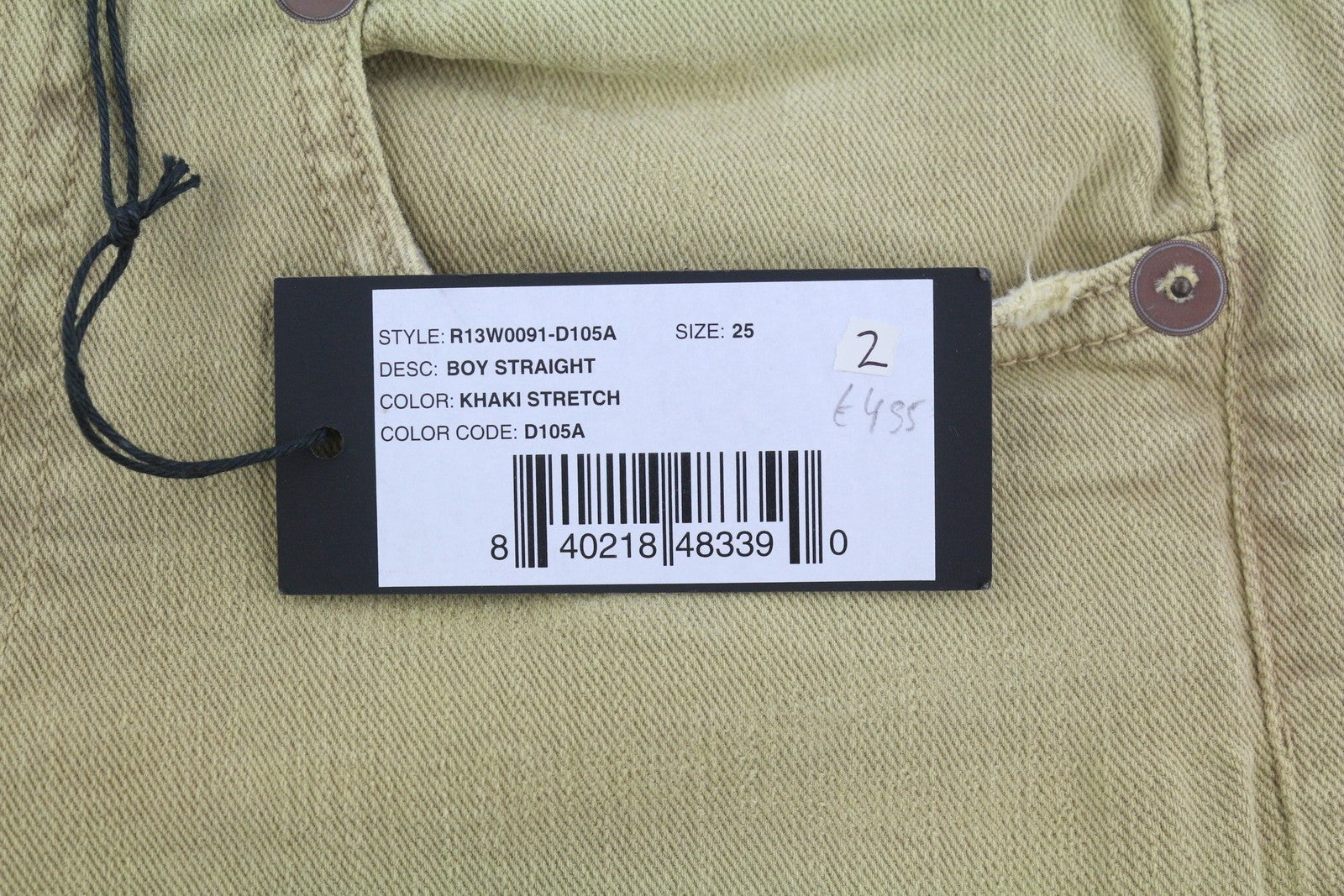 R13 Boy Straight Women Jeans 26 Khaki Stretchy Washed Ankle Length Logo RRP€699