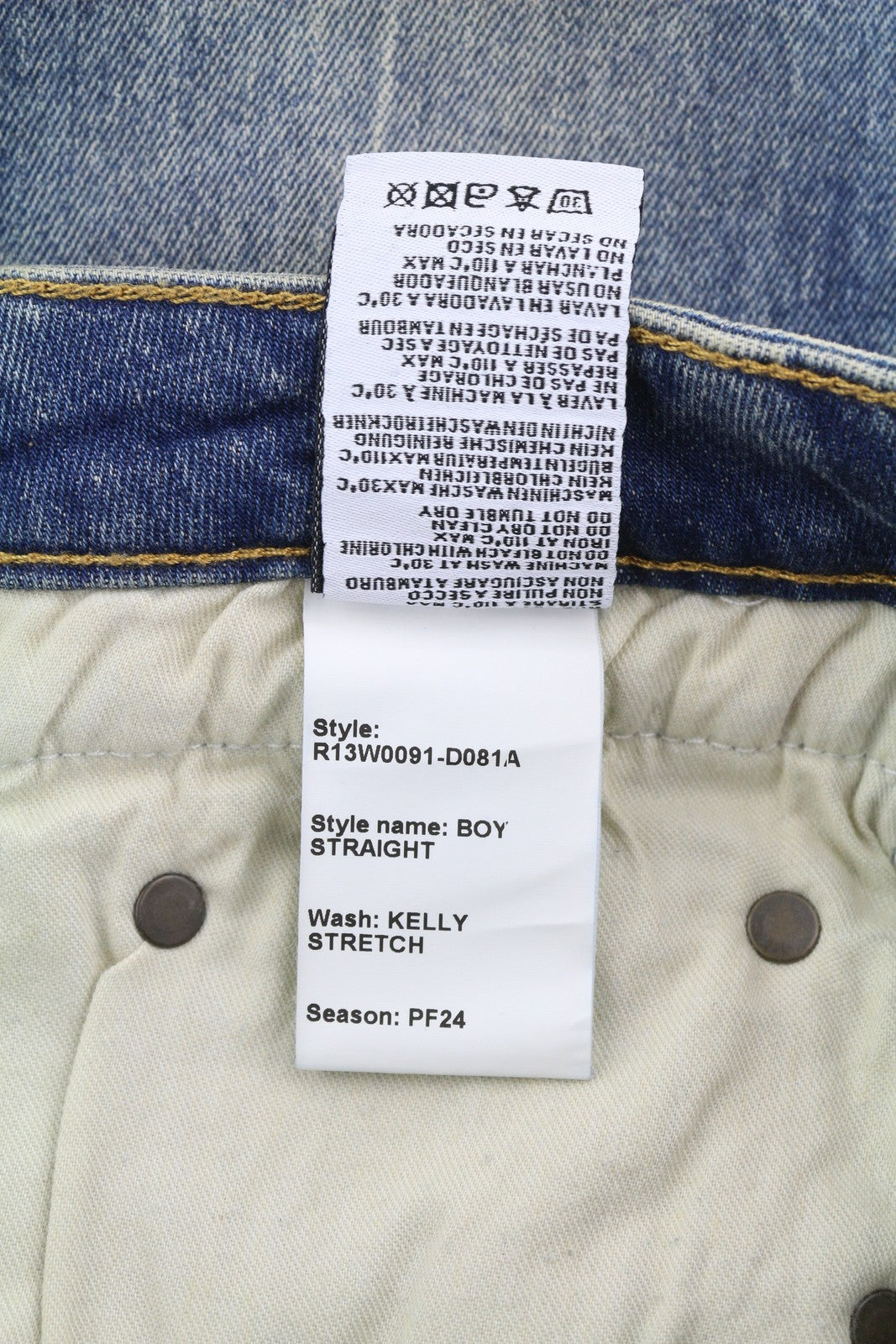 R13 Boy Straight Women Jeans 27 Ankle Cropped Washed Blue Kelly Stretch RRP€645