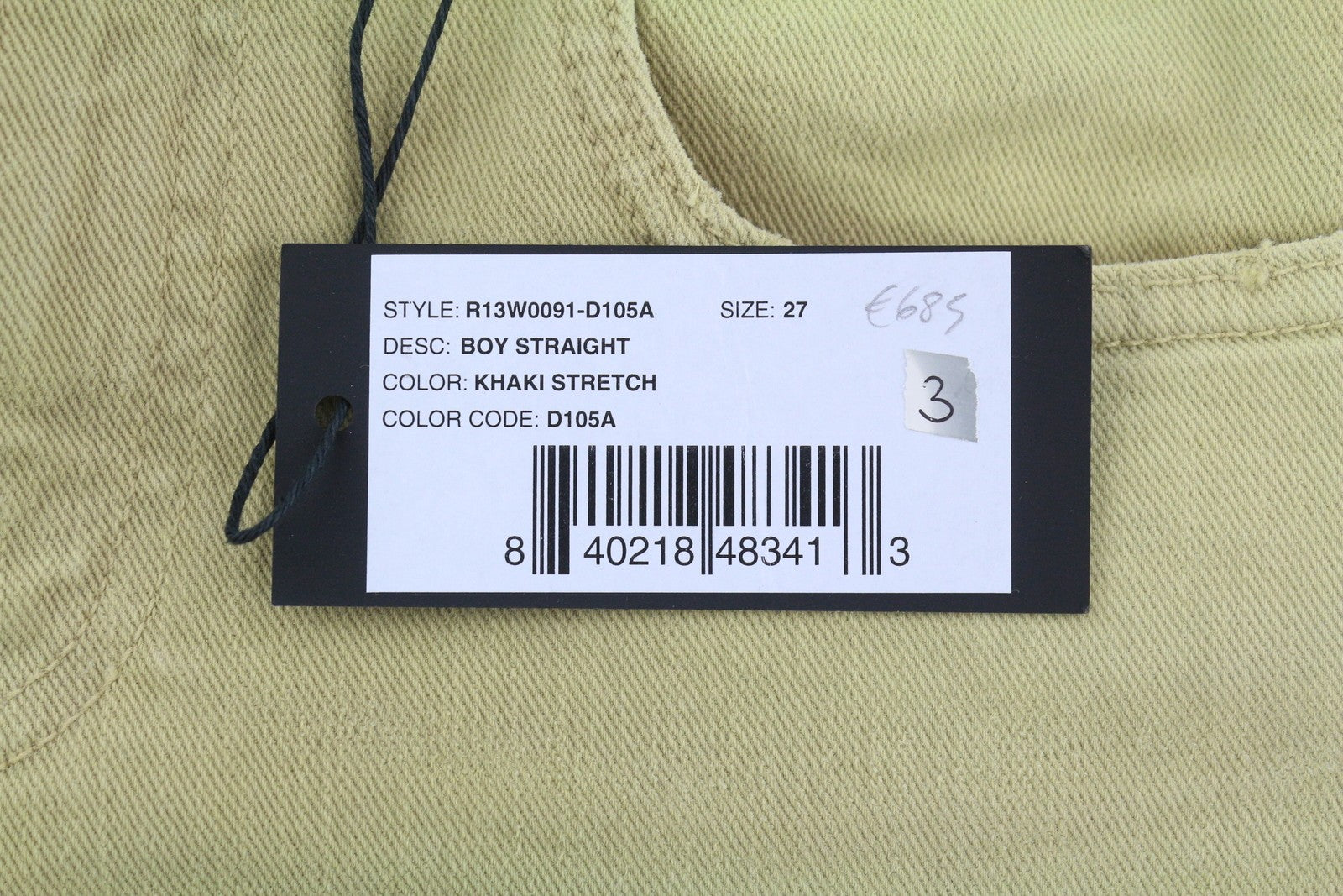 R13 Boy Straight Women Jeans 27 Khaki Stretch Faded Casual Ankle RRP699