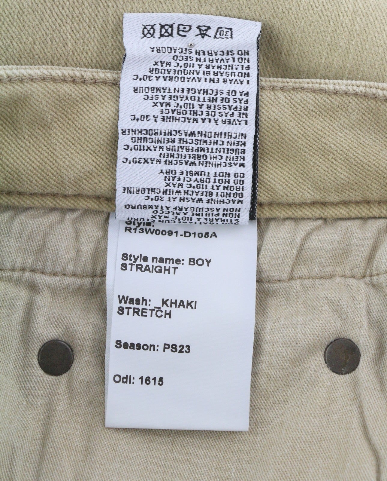 R13 berniukiški tiesūs moteriški džinsai, 27 chaki spalvos, tamprūs, išblukę, trumpinti iki kulkšnių, rekomenduojama kaina – 699 €